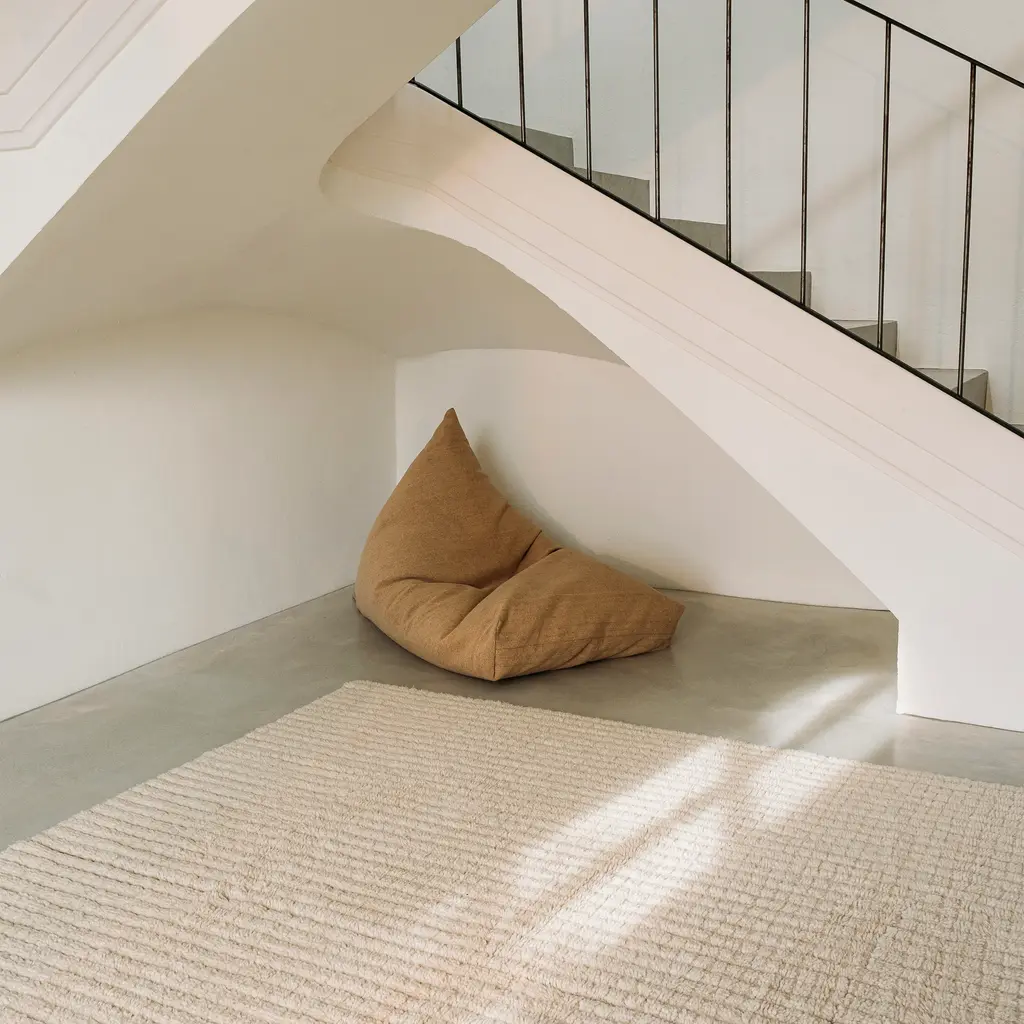 The Net Rug from Lorena Canals is a meticulously handcrafted wool piece featuring a refined geometric checkered pattern that gradually reveals its beauty over time. Set on a Natural canvas base with subtle Sea Shell accents, it brings understated elegance and timeless sophistication to any space. Thanks to the WOOLABLE® patent, this lightweight rug is machine washable and softer than traditional tufted wool rugs. Each rug includes a cotton tote for storage and a complimentary anti-slip underlay to keep it securely in place. Highlights