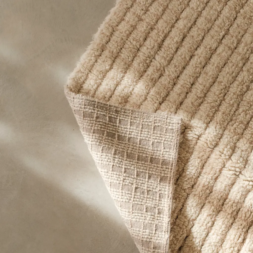The Net Rug from Lorena Canals is a meticulously handcrafted wool piece featuring a refined geometric checkered pattern that gradually reveals its beauty over time. Set on a Natural canvas base with subtle Sea Shell accents, it brings understated elegance and timeless sophistication to any space. Thanks to the WOOLABLE® patent, this lightweight rug is machine washable and softer than traditional tufted wool rugs. Each rug includes a cotton tote for storage and a complimentary anti-slip underlay to keep it securely in place. Highlights