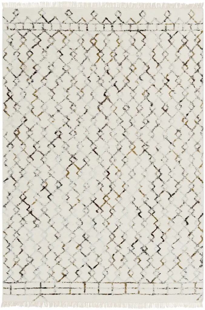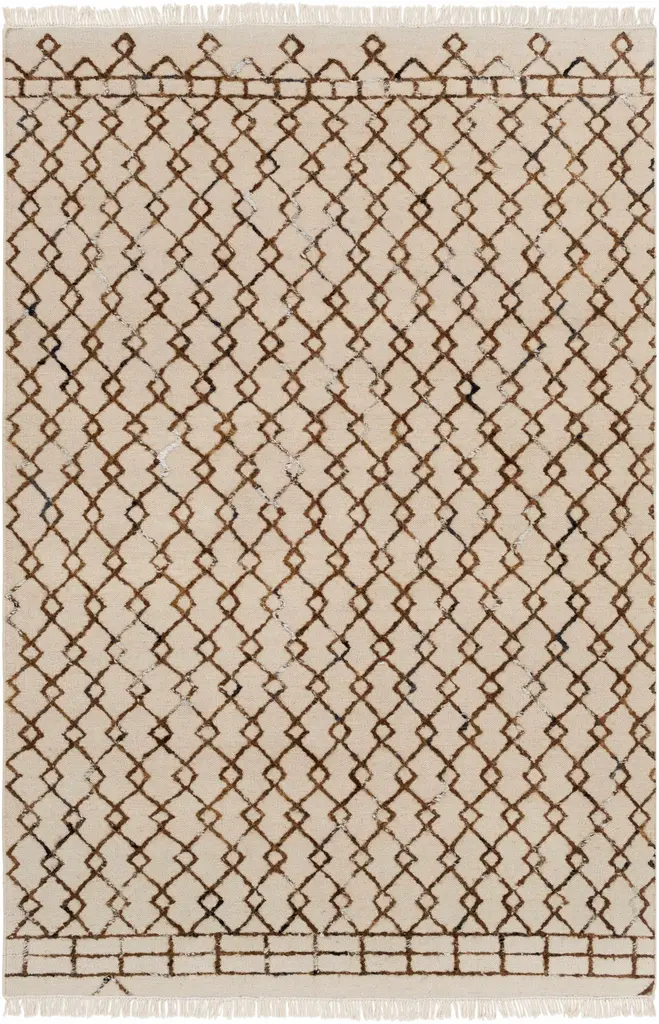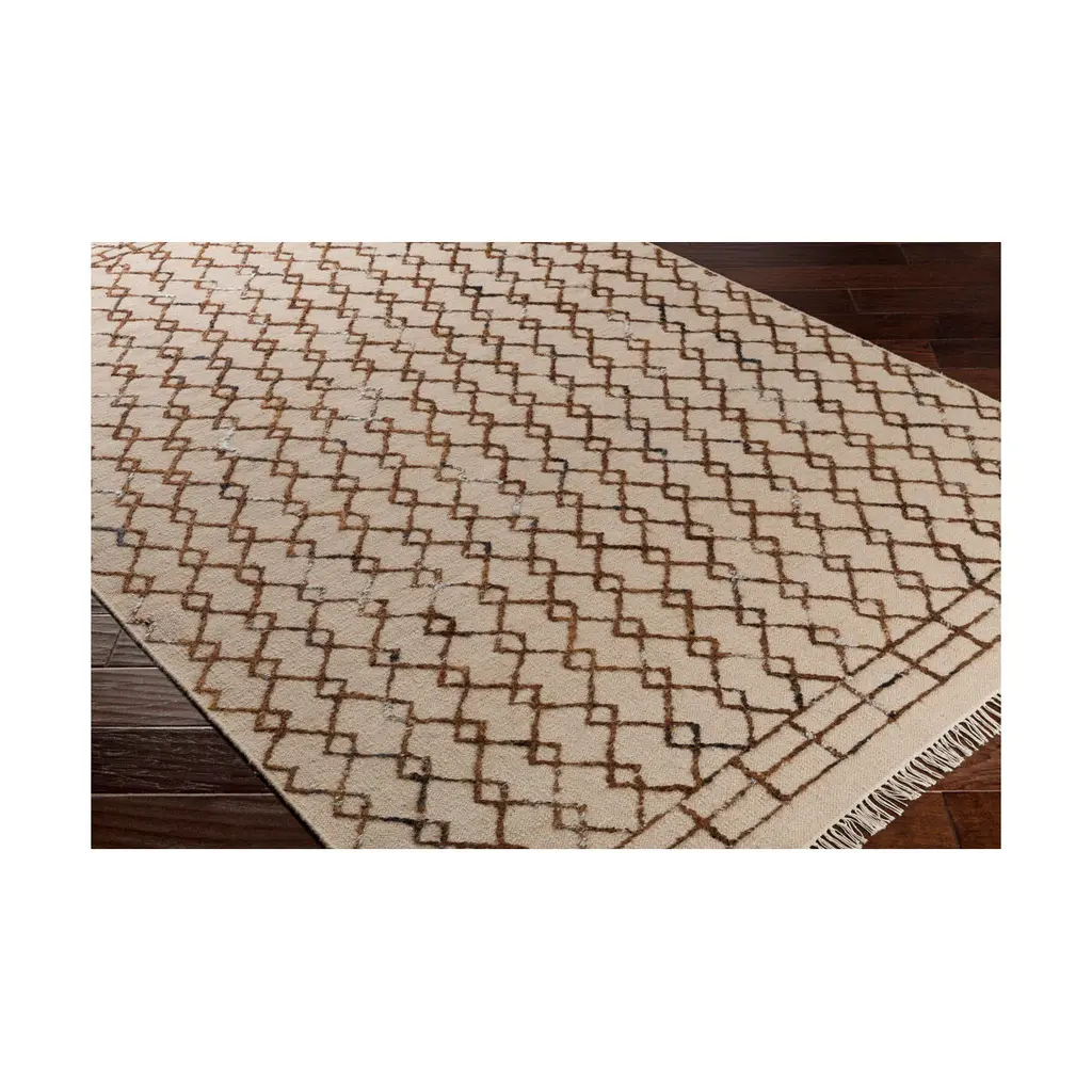 Nettie 36 X 24 Inch Neutral And Brown Area Rug, Wool And Cotton