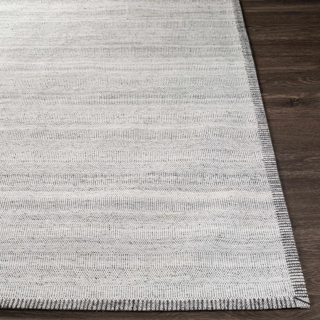 Collection: Nettleham Colors: Charcoal, Medium Gray, Silver Gray Construction: Hand Woven Material: 100% Viscose Pile: Medium Pile Pile Height: 0.25" Styles: Transitional,Bohemian Backing: Canvas Made In: India Thickness: 0.25" Price Range: $$$$$ (Affordable)