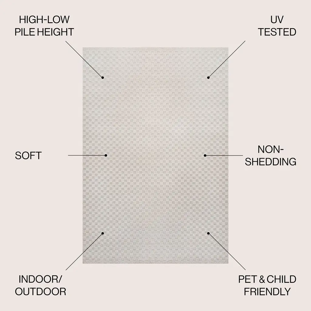 The tone-on-tone checkerboard pattern of this rug is inspired by minimalist Scandinavian designs. Soft polypropylene fibers are woven into small squares for a textured, high-low pattern. Use this easy-care, family-friendly rug on the porch or deck, or in high traffic spaces like a living room, dining room or entry.
