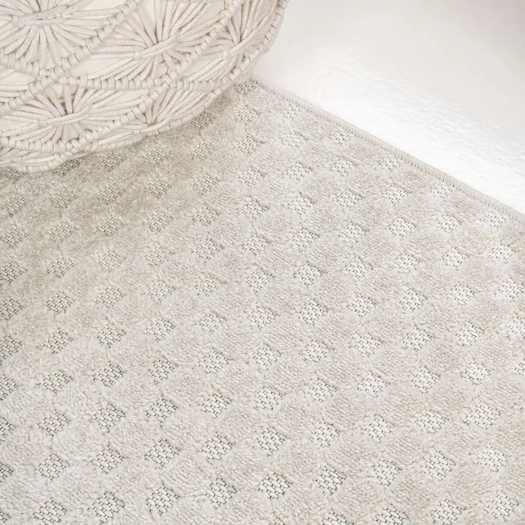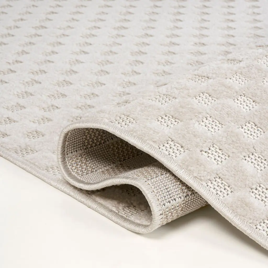 The tone-on-tone checkerboard pattern of this rug is inspired by minimalist Scandinavian designs. Soft polypropylene fibers are woven into small squares for a textured, high-low pattern. Use this easy-care, family-friendly rug on the porch or deck, or in high traffic spaces like a living room, dining room or entry.