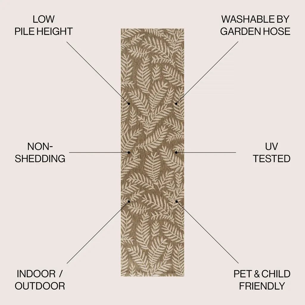 Whether you live in a tropical beach retreat or just love jungalow style, the allover palm frond pattern of this rug brings the jungle home. Scattered palm tree branches create graphic contrast in rich yellow and cream tones. The busy pattern is perfect for your tropical patio, entry, kitchen, hallway, living room or bedroom. The pet-friendly and kid-proof flatweave design makes it easy to clean, and perfect for the beach house.