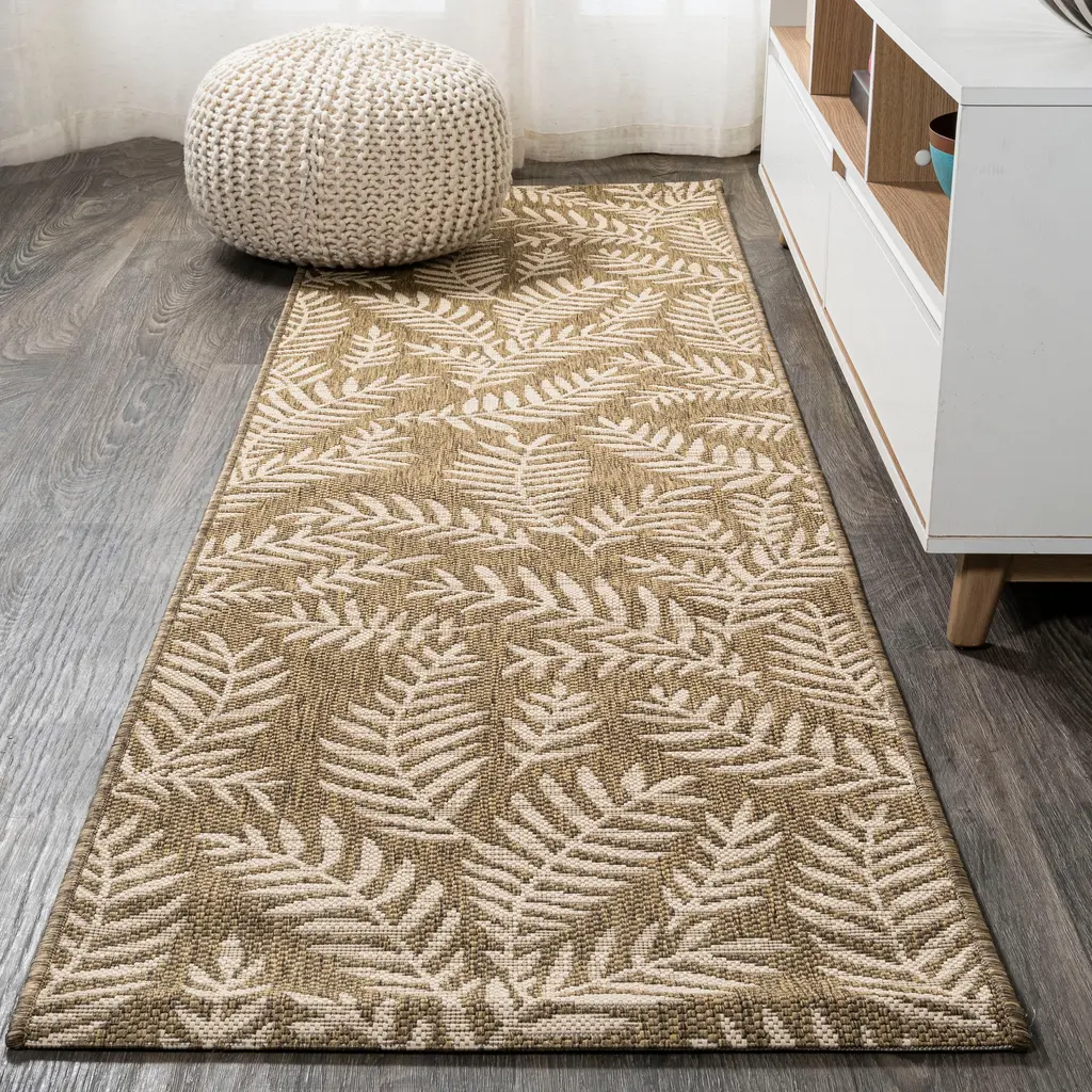 Whether you live in a tropical beach retreat or just love jungalow style, the allover palm frond pattern of this rug brings the jungle home. Scattered palm tree branches create graphic contrast in rich yellow and cream tones. The busy pattern is perfect for your tropical patio, entry, kitchen, hallway, living room or bedroom. The pet-friendly and kid-proof flatweave design makes it easy to clean, and perfect for the beach house.