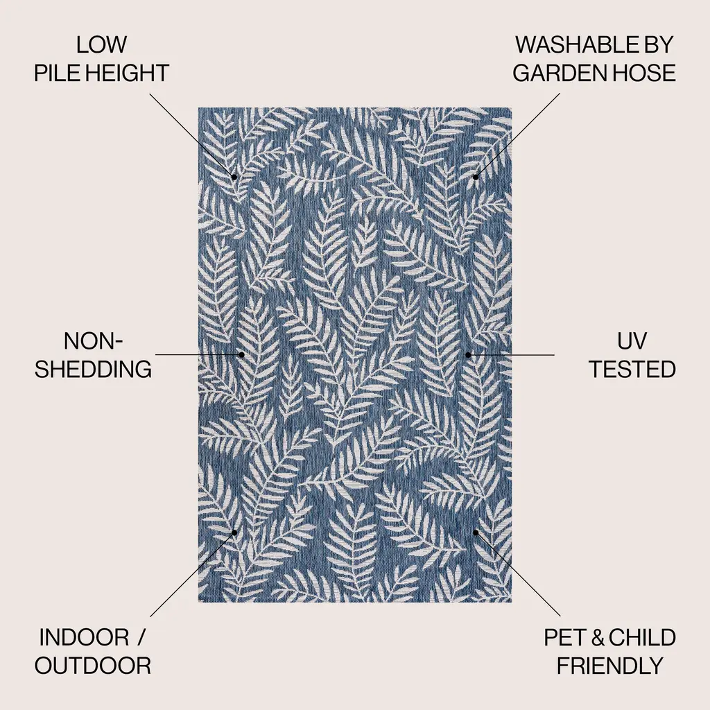 Whether you live in a tropical beach retreat or just love jungalow style, the allover palm frond pattern of this rug brings the jungle home. Scattered palm tree branches create graphic contrast in rich yellow and cream tones. The busy pattern is perfect for your tropical patio, entry, kitchen, hallway, living room or bedroom. The pet-friendly and kid-proof flatweave design makes it easy to clean, and perfect for the beach house.