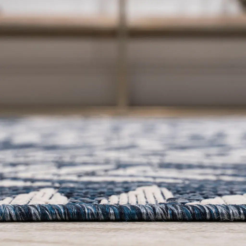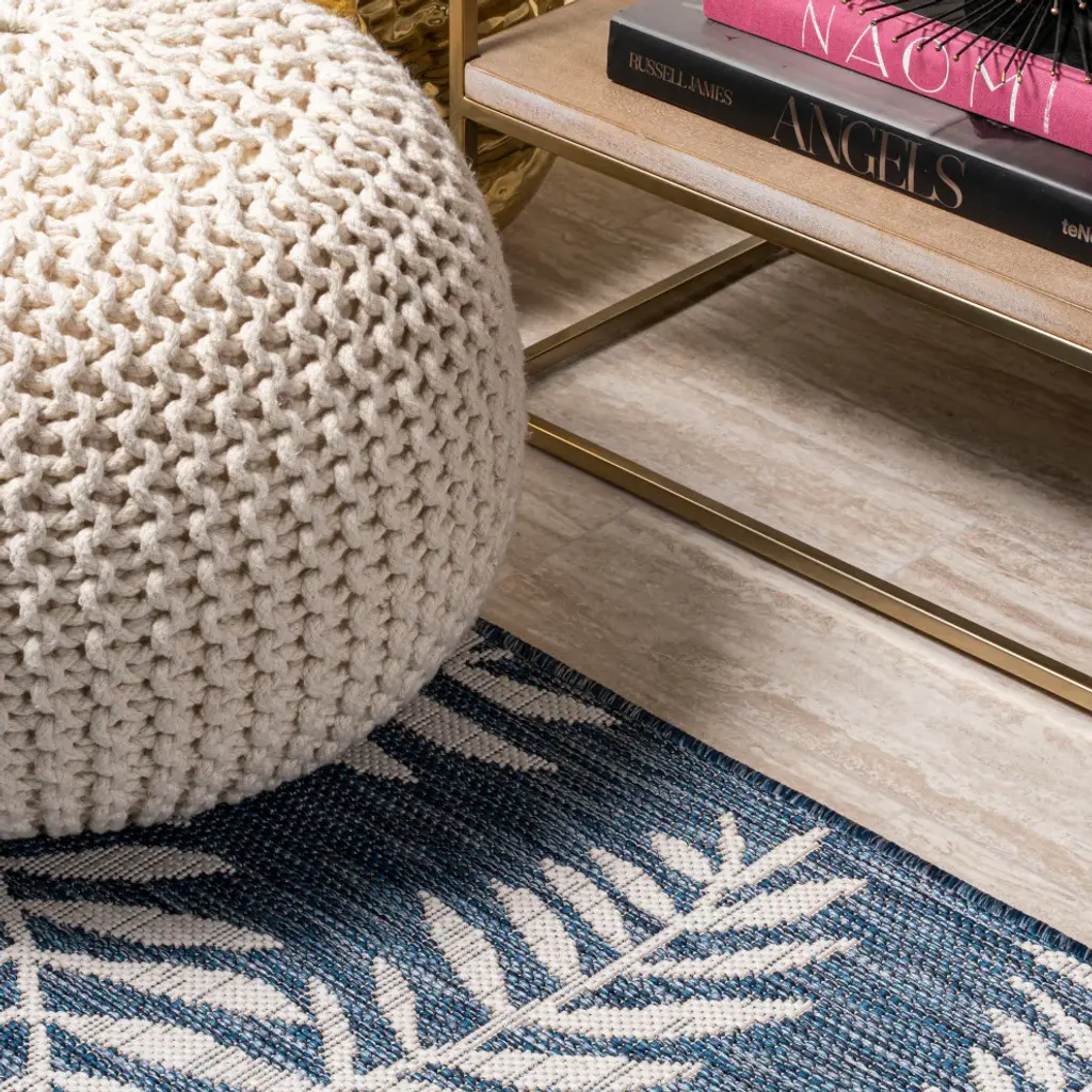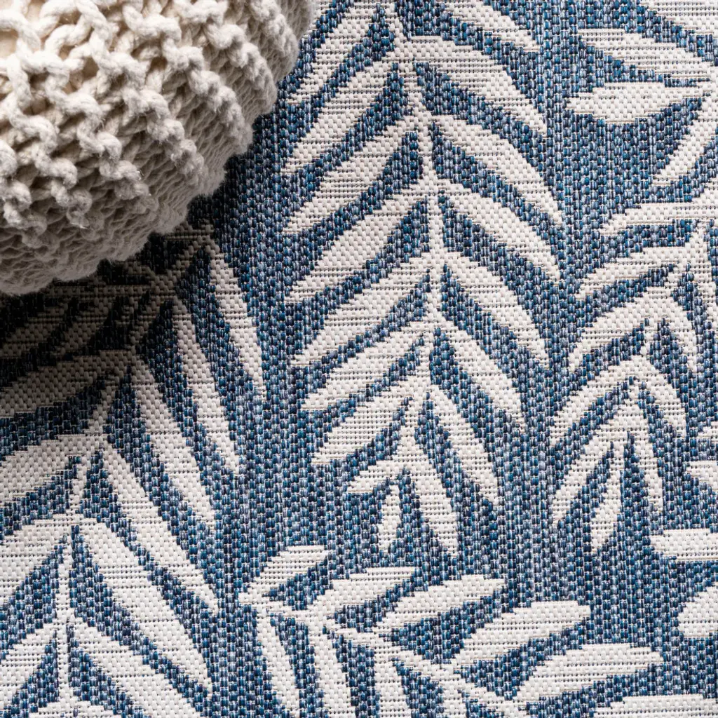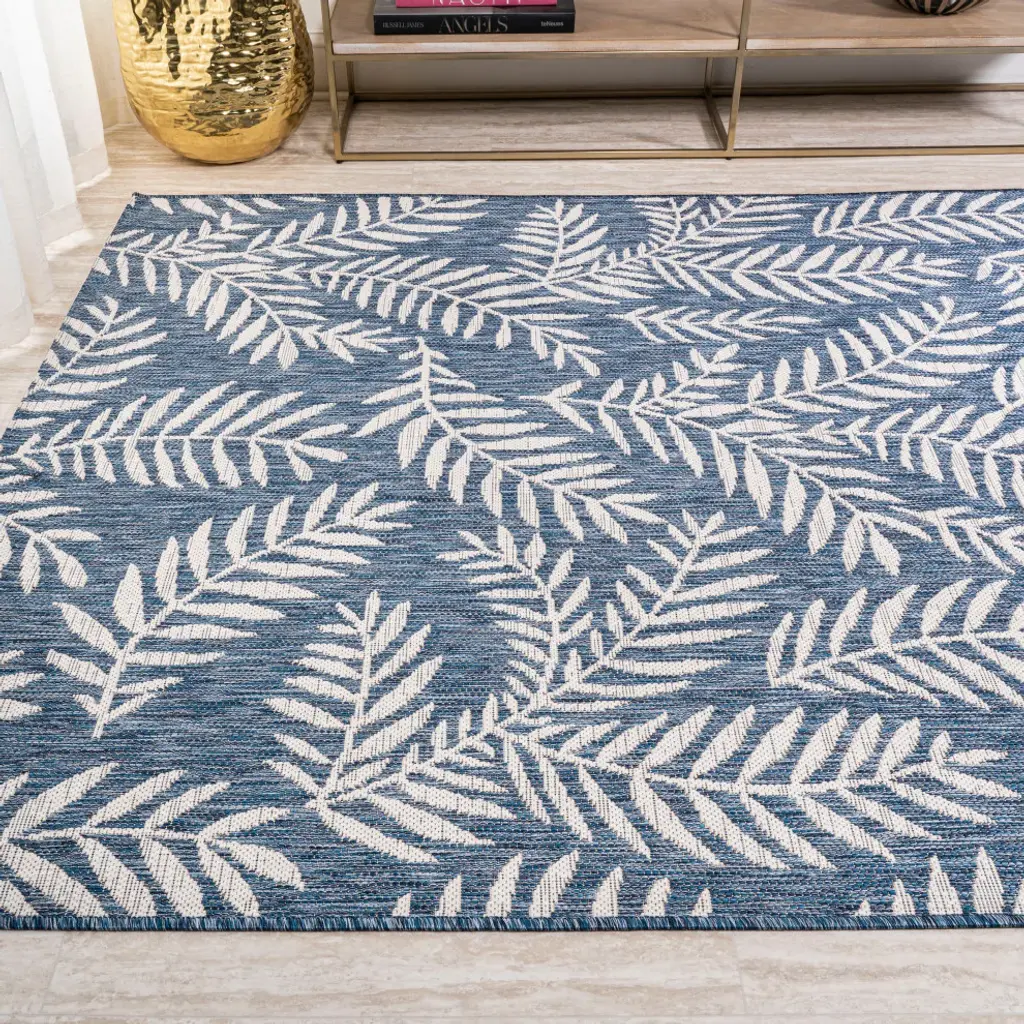 Whether you live in a tropical beach retreat or just love jungalow style, the allover palm frond pattern of this rug brings the jungle home. Scattered palm tree branches create graphic contrast in rich navy and cream tones. The busy pattern is perfect for your tropical patio, entry, kitchen, hallway, living room or bedroom. The pet-friendly and kid-proof flatweave design makes it easy to clean, and perfect for the beach house.Features:• Flat-weave construction of 100% polypropylene• Durable and easy-care - just sweep or hose down with mild soap and water• 100% Polypropylene• No backing, use of rug pad is recommended (sold separately)• Power Loomed in Turkey• Thickness measures: 0.19 in.• Available in multiple sizes and/or colorsRug Care:• Durable and easy-care - just sweep or hose down with mild soap and water• Packing and shipping may cause temporary creases in rugs, which will flatten out after a week on the floor; to expedite the process, try back-rolling your rug before laying it down, and then allow ample time for the remaining creases to relax• Please Note: Due to differences in monitors, some rug colors may vary slightly. Lengths and widths may vary from the published dimensions. Patterns may vary slightly according to shape and size selected.About us:Style your floors with JONATHAN Y. By combining fine craftsmanship and design, this New York creative studio is bringing fashion to your floors. The collection mixes sustainable organic materials, vibrant colors and trend worthy styles to create JONATHAN Y''s distinctive catalog of rugs.