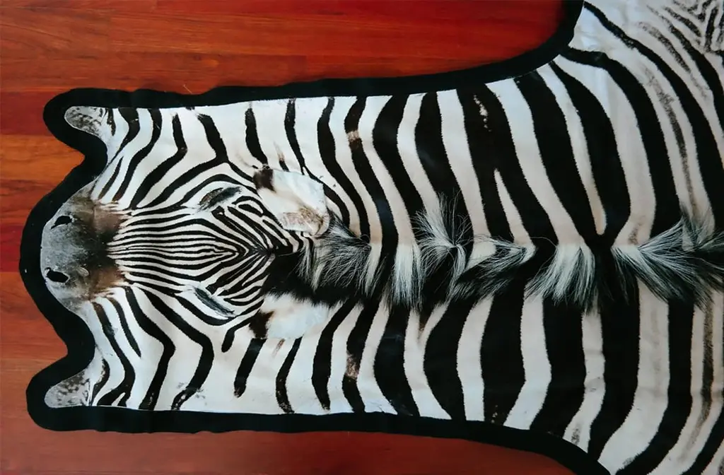 Elevate your space with this striking black felted Burchell zebra skin rug, measuring an impressive 9 feet from tip of nose to tip of tail and 6 feet wide. Expertly felted to protect the hide from aggressive rubbing against surfaces, this authentic wild hide showcases the natural beauty and rugged character of a Burchell zebra, complete with unique markings and occasional minor imperfections like scratches and scars—a testament to its untamed origins. Shipped securely via UPS and backed by a 14-day return policy, this one-of-a-kind statement piece brings a touch of the wild into your home.We do not ship international and only within the US due to this being an animal hide product.Please note: This is a wild rug so minor imperfections are to be expected such as scratches/Scars. If you have any questions, please let us know. Thank you