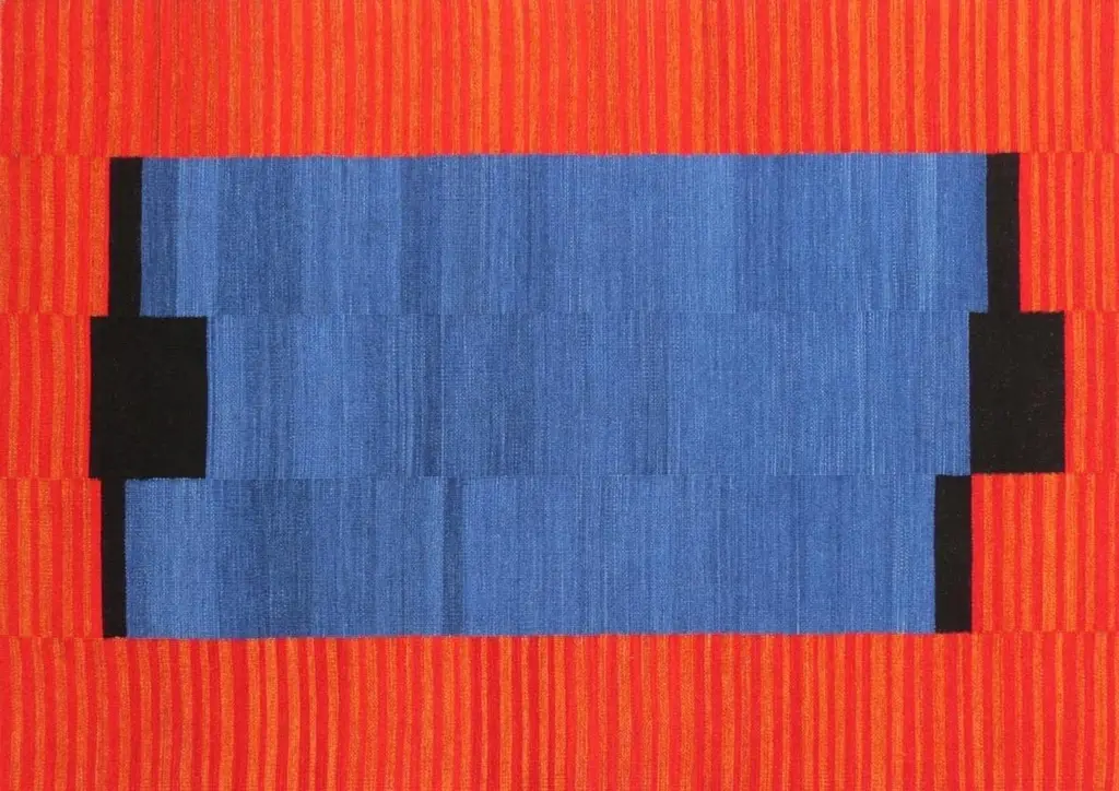 Beautiful new Kilim with geometrical modern design and light colors, entirely handwoven with wool on cotton foundation. Measures: size: 5ft 7in x 7ft 10in.