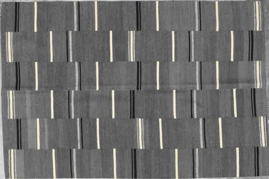 Beautiful new Kilim with geometrical tribal design and light colors, entirely handwoven with wool on cotton foundation. Size: 170 x 240 cm.
