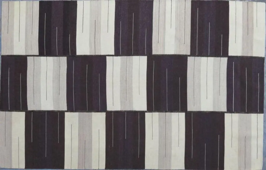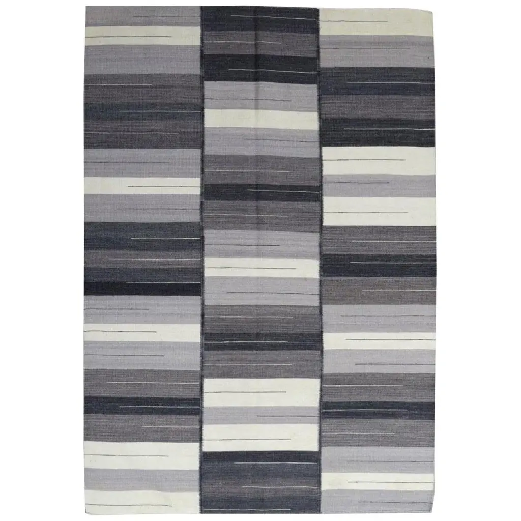 Beautiful new Kilim with geometrical tribal design and light colors, entirely handwoven with wool on cotton foundation. Size: 170 x 240 cm.