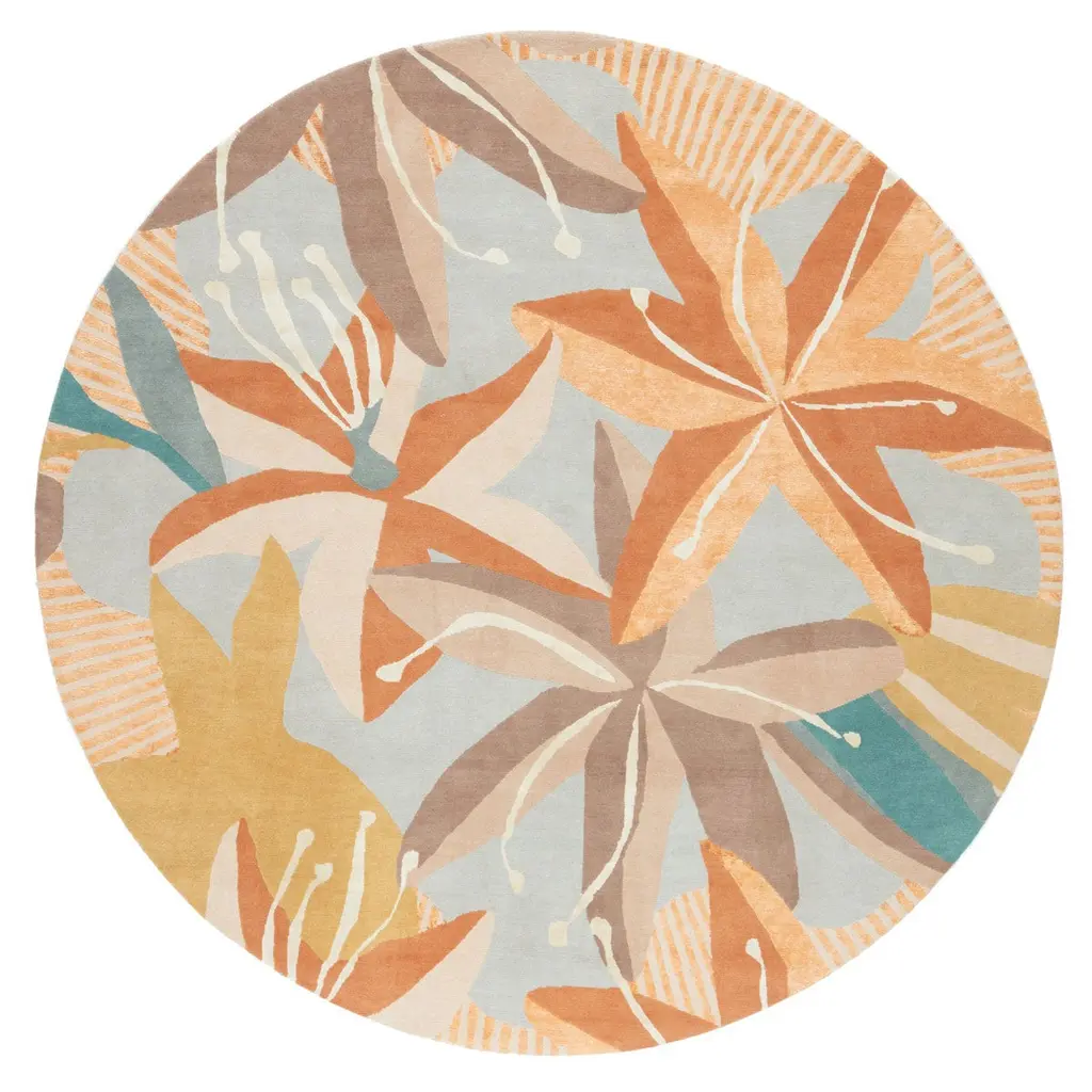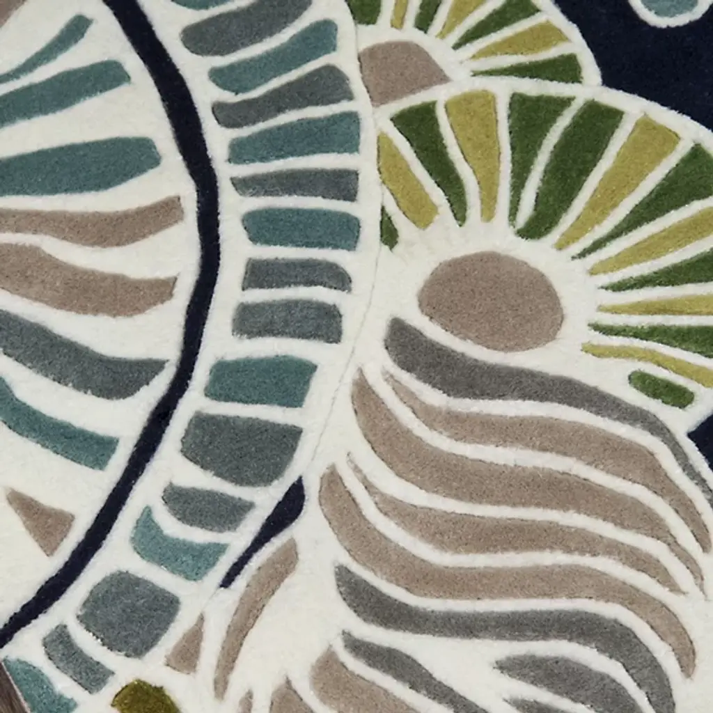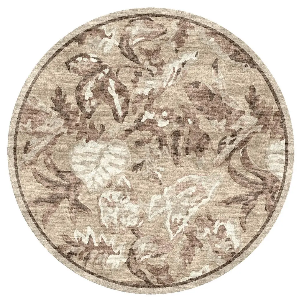 The New Wave NW-146 Round Area Rug from Momeni adds a casual and artistic presentation to inside spaces. A circular construction hand-knotted from New Zealand wool emerging from a canvas backing, it’s woven by Indian artisans and places swirling stylized tree patterns and curving, patterned accents across a darker surface, relying on the complexity and fine details.