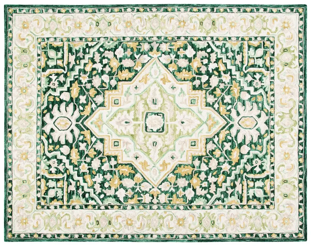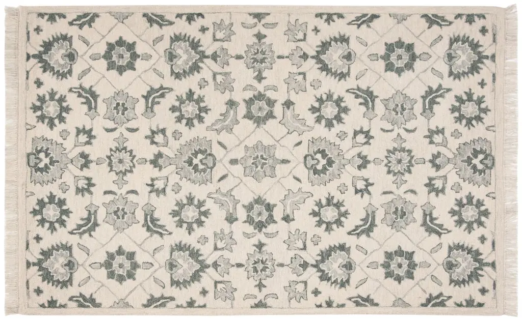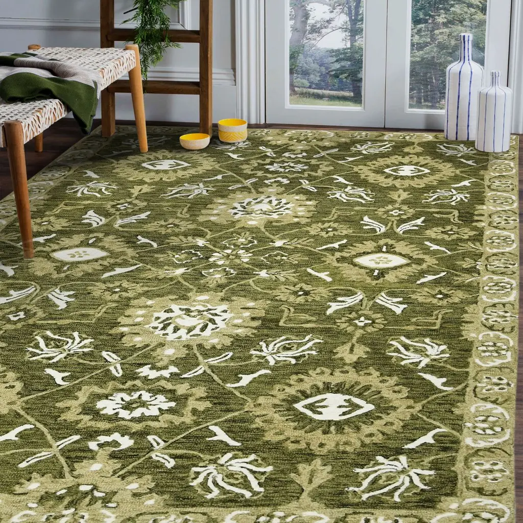 This lovely area rug in a classic floral pattern will be an exceptional addition to your home. It is hand-crafted with pride in India using 100% New Zealand wool, providing the highest level of comfort underfoot. Featuring a cotton backing to help prevent sliding and shifting, this rug is perfect for bedrooms, living rooms, and dining rooms alike.