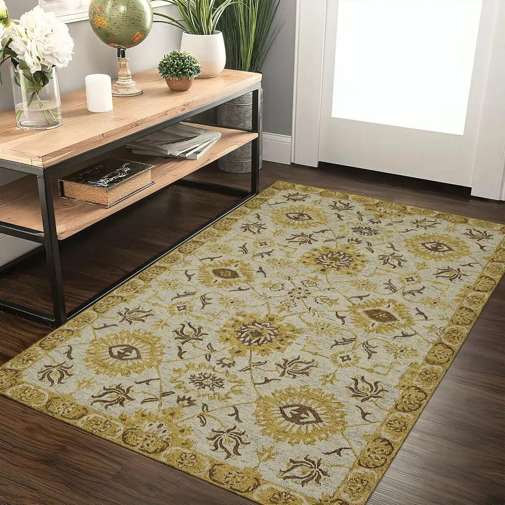This lovely area rug in a classic floral pattern will be an exceptional addition to your home. It is hand-crafted with pride in India using 100% New Zealand wool, providing the highest level of comfort underfoot. Featuring a cotton backing to help prevent sliding and shifting, this rug is perfect for bedrooms, living rooms, and dining rooms alike.