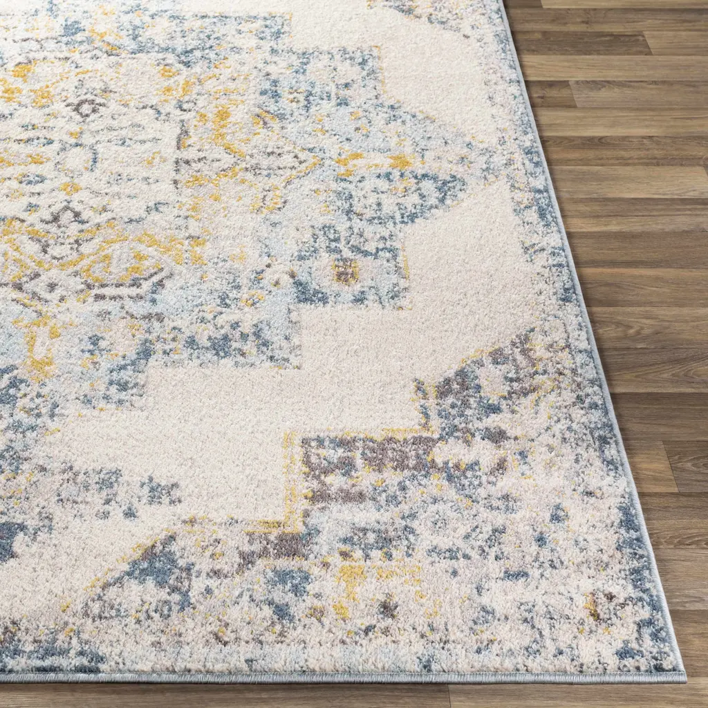 Collection: Nibley Colors: Light Gray, Mustard, Blue, Dark Brown, Ice Blue, Medium Gray Construction: Machine Woven Material: 100% Polypropylene Pile: Medium Pile Pile Height: 0.31" Styles: Traditional Made In: Turkey Thickness: 0.5" Price Range: $$$$$ (Most Affordable)