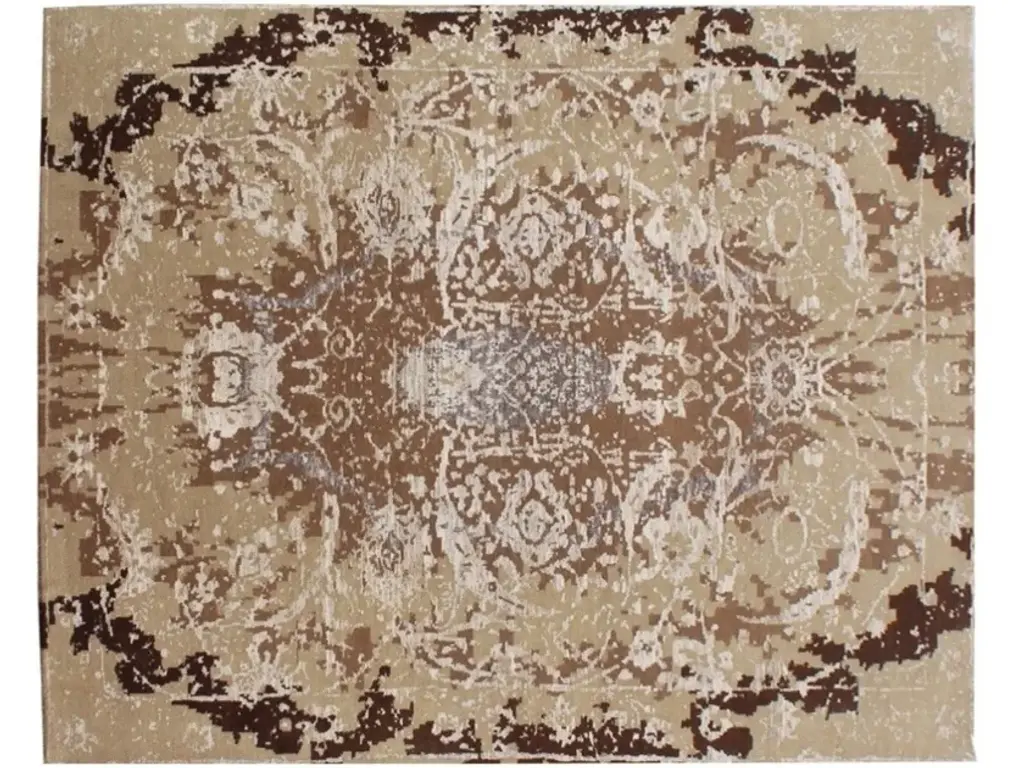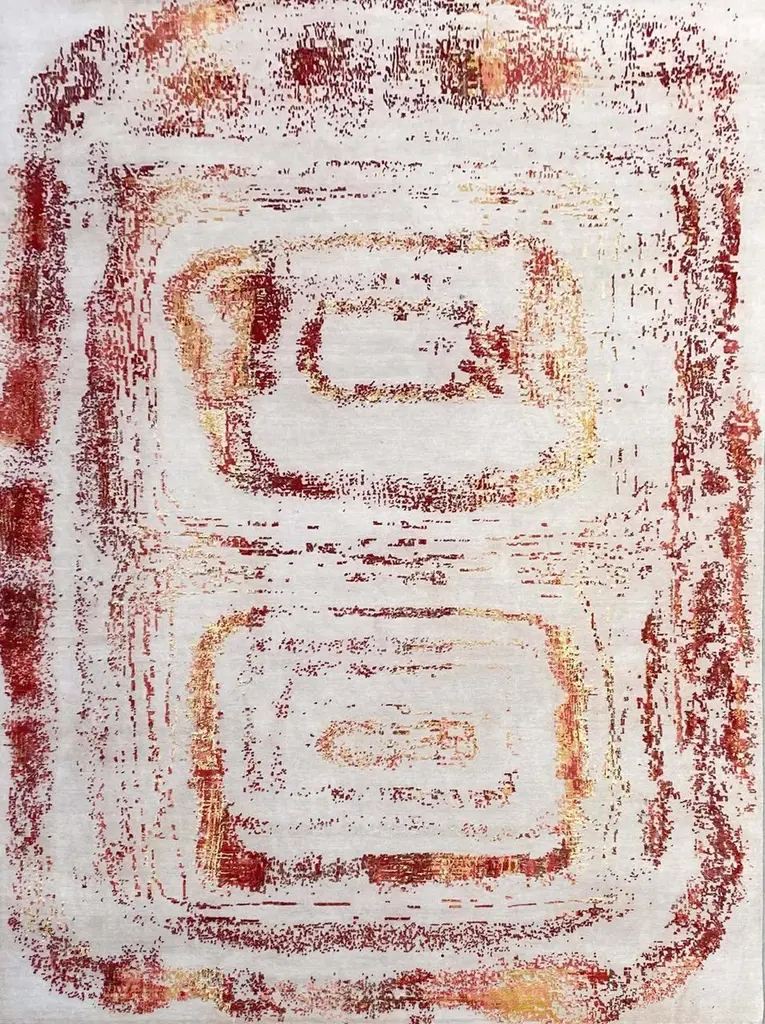 Very beautiful contemporary rug with a beautiful design and light colors, entirely hand knotted with Tibetan knots with wool and silk velvet on cotton foundation.