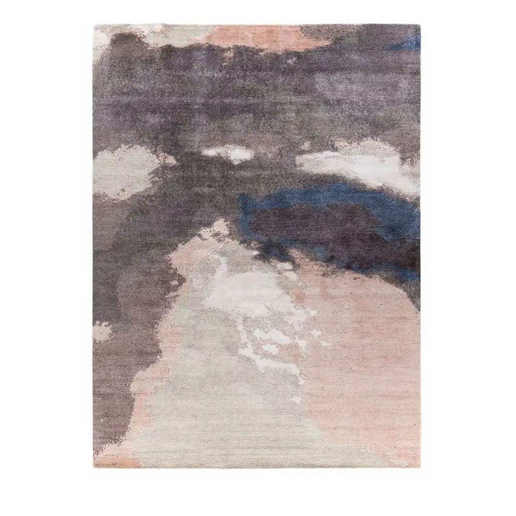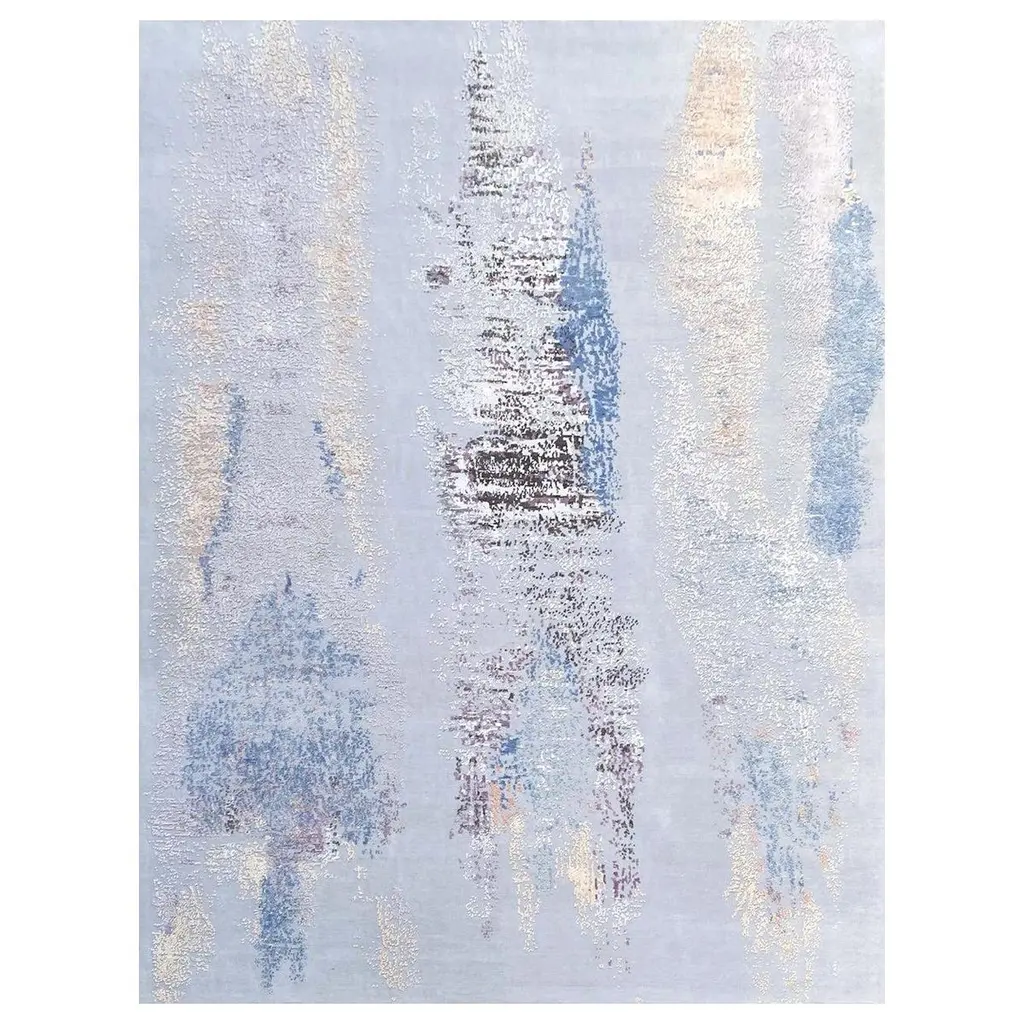 Very beautiful contemporary rug with a beautiful design and light colors, entirely hand knotted with Tibetan knots with wool and silk velvet on cotton foundation.
