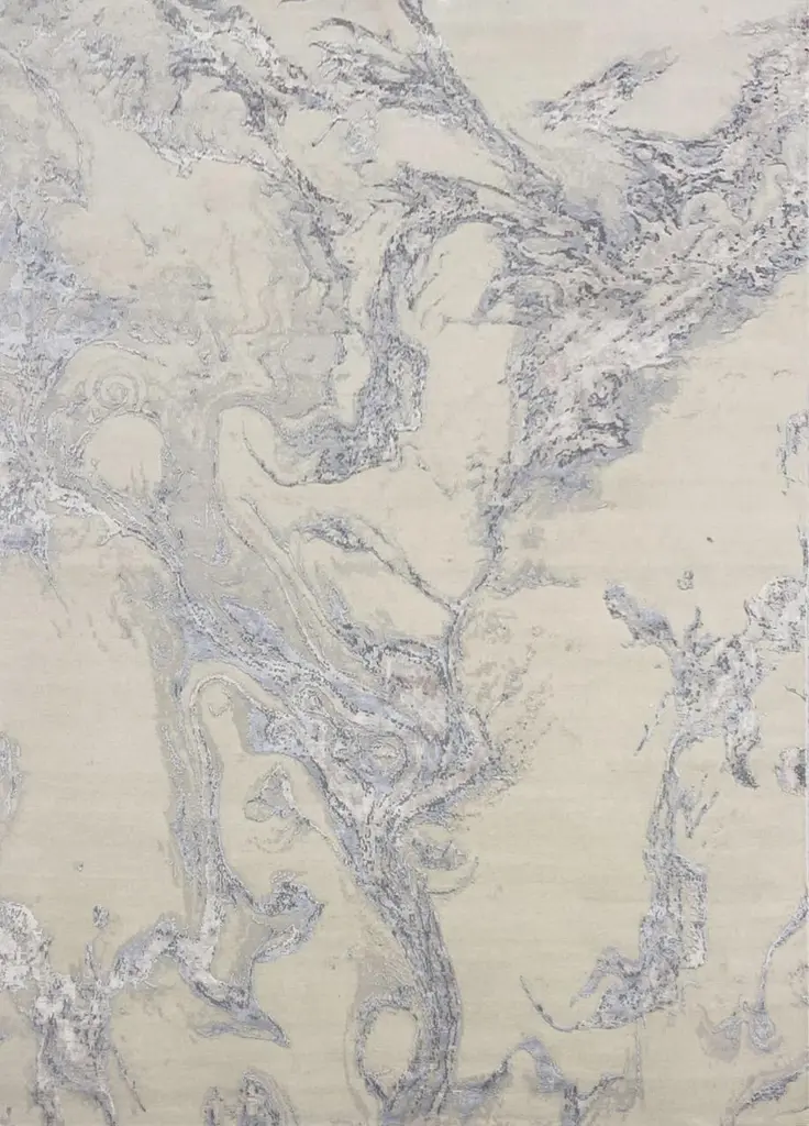 Very beautiful contemporary rug with a beautiful design and light colors, entirely hand knotted with Tibetan knots with wool and silk velvet on cotton foundation.