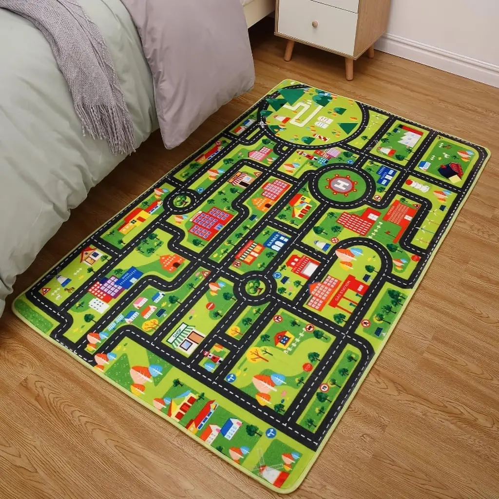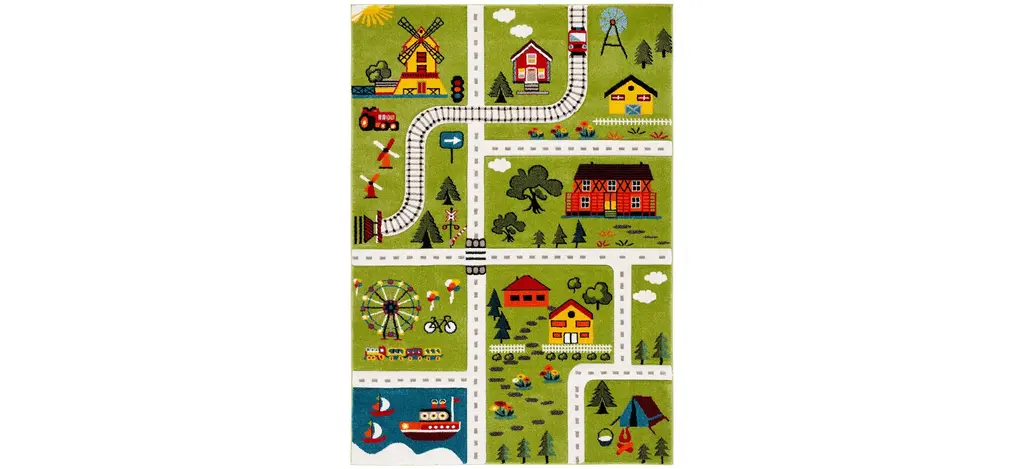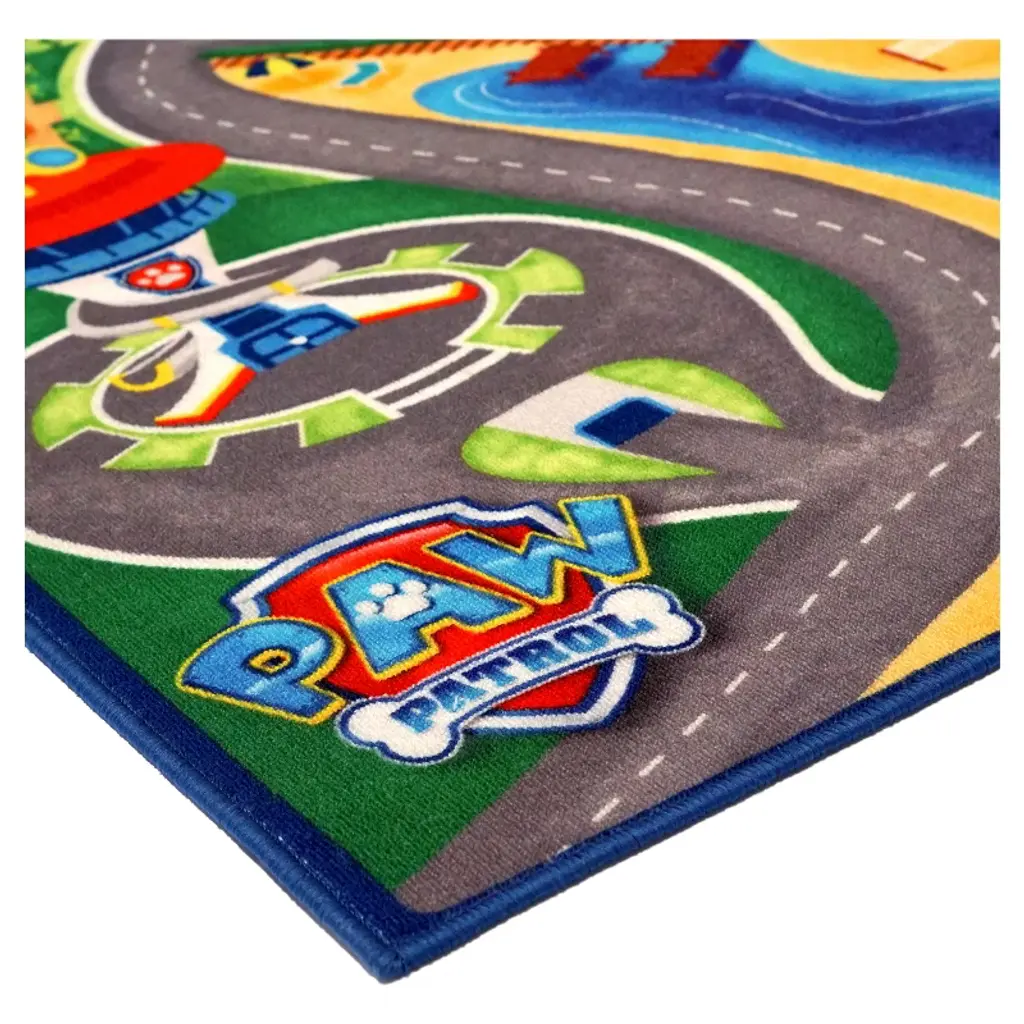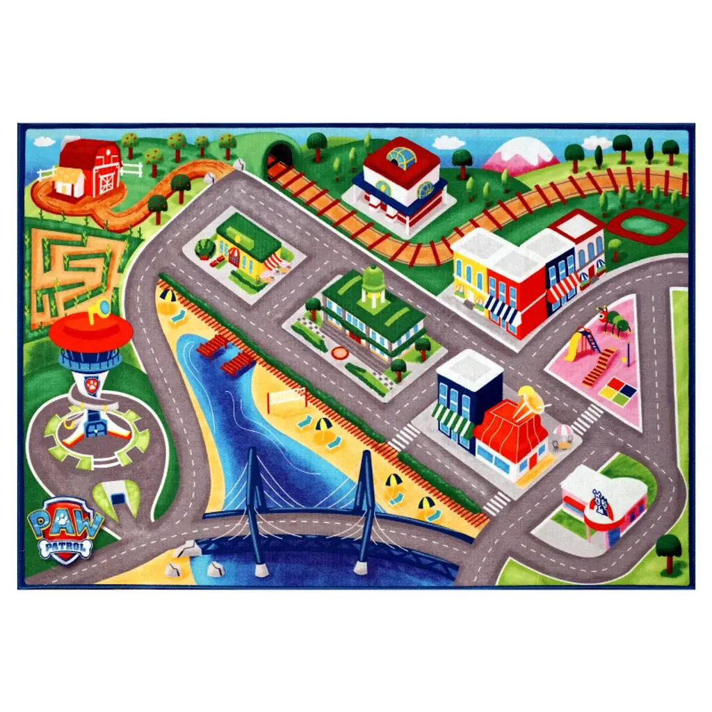 Kids will love to spend hours with their favorite pups as they work together to protect and serve Adventure Bay. This Jumbo sized interactive play rug features the village scene, Bay Bridge and the Lookout Tower. The Paw Patrol is always up for a challenge while also making sure there is time for a game or laugh! Jumbo Rug measures 4'6" x 6'6". Digitally Printed Polyester with Canvas Backing, Easy to Clean and Durable. Add your favorite Paw Patrol toys from your own collection to enhance this interactive experience.