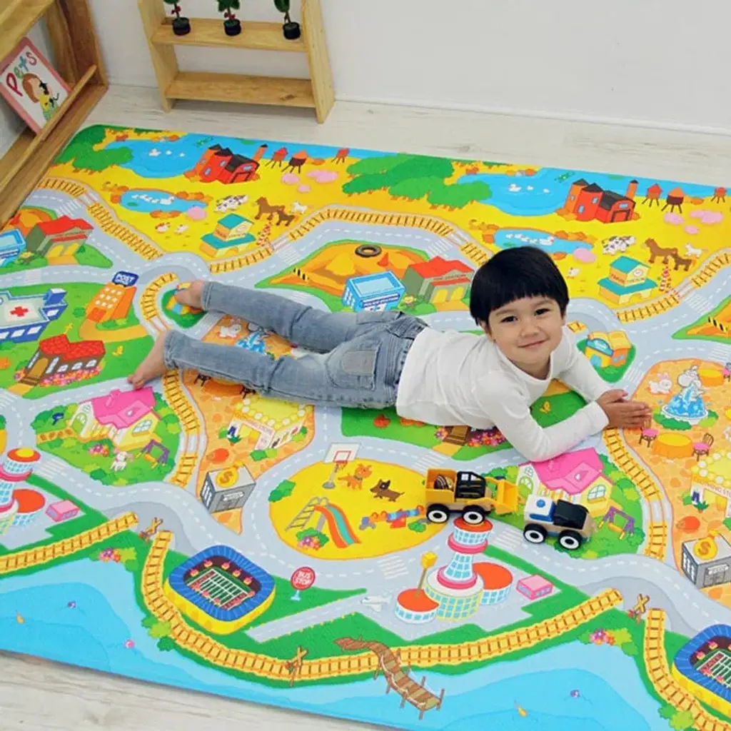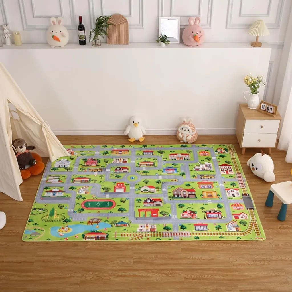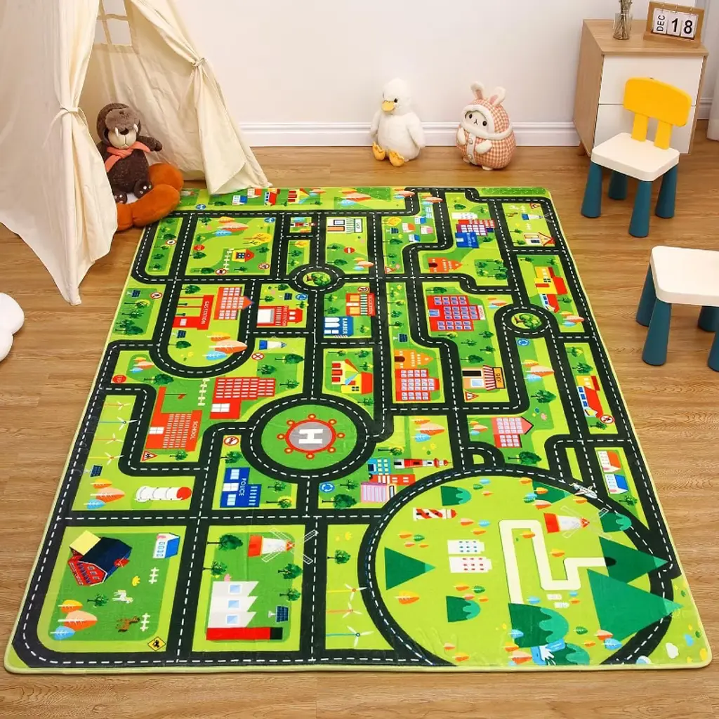 Kids will love to spend hours with their favorite pups as they work together to protect and serve Adventure Bay. This Jumbo sized interactive play rug features the village scene, Bay Bridge and the Lookout Tower. The Paw Patrol is always up for a challenge while also making sure there is time for a game or laugh! Jumbo Rug measures 4'6" x 6'6". Digitally Printed Polyester with Canvas Backing, Easy to Clean and Durable. Add your favorite Paw Patrol toys from your own collection to enhance this interactive experience.