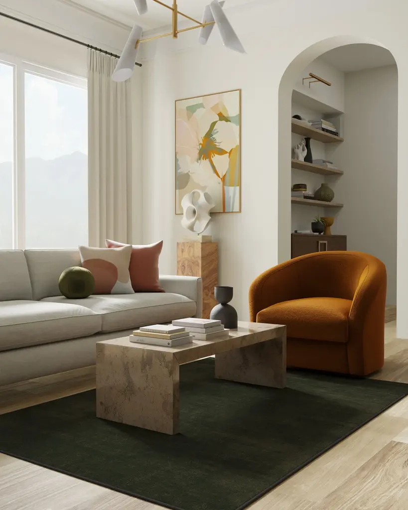 Refresh your space with our Nico Solid Olive Rug, a luxurious design featuring a rich, deep olive solid background. Its distressed texture adds depth, while hints of warm yellow undertones delicately interspersed throughout the rug provide an inviting composition. Water-resistant, stain-resistant, and machine-washable. Rug colors may vary slightly according to your device and the lighting in your space.