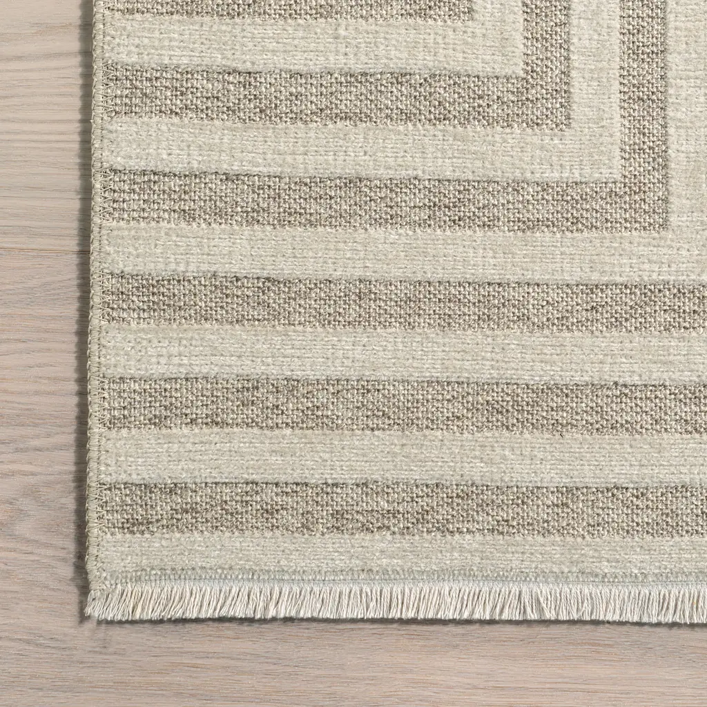 Nicolai Graphic Fringed Reversible Machine Washable Area Rug - 5' 3" X 8' - Cream - Rectangle