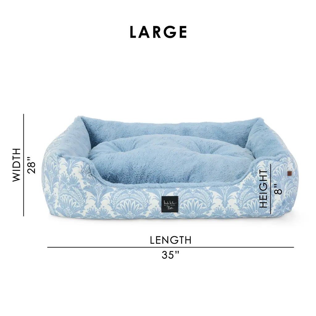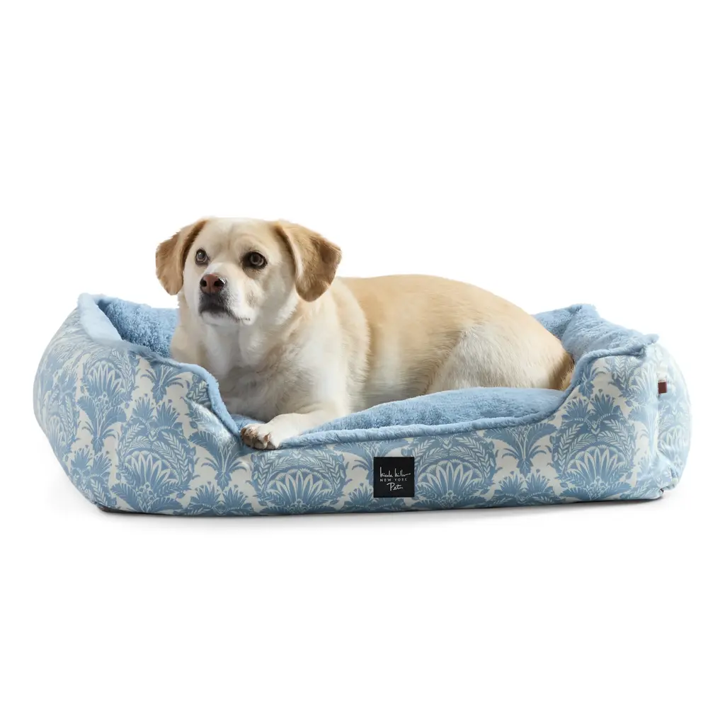 Nicole Miller New York Pet Mod Damask Plushy Bolster Cozy & Calming Pet - Blue - Xs: 18.5"x14.57"x6.3"
