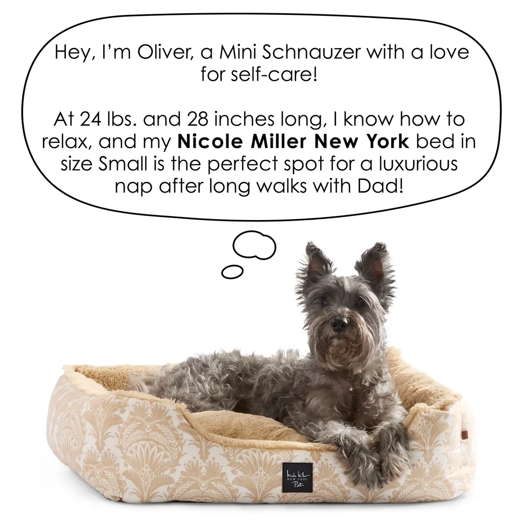 Pamper your pet with the Nicole Miller New York Pet Mod Damask Plushy Bolster Bed, designed for ultimate comfort and relaxation. Featuring a velvety soft, calming exterior and a cozy faux fur lining, this bed provides a soothing retreat for your furry friend. The removable, machine-washable cover on the Mod Damask Bolster bed ensures easy maintenance, while the water-repellent surface and skid-resistant bottom offer lasting durability and stability. Perfect for pets of all sizes, this stylish and functional bed is a must-have for any pet lover. Coordinate this pet bed with Nicole Miller New York area rugs for a cohesive, chic look. Standard 100 by Oeko-Tex Certified.