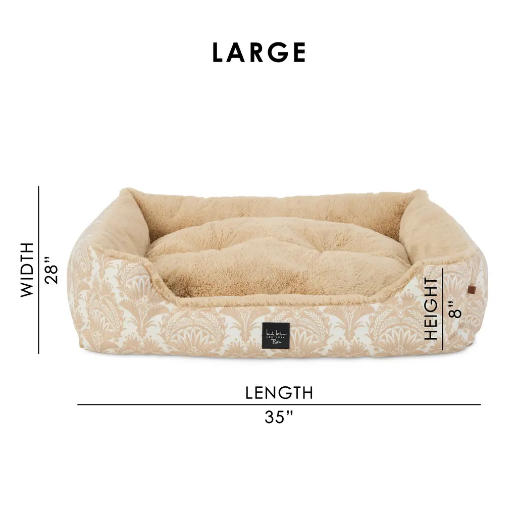 Nicole Miller New York Pet Mod Damask Plushy Bolster Cozy & Calming Pet - Taupe - L: 35.43"x27.56"x7.87"