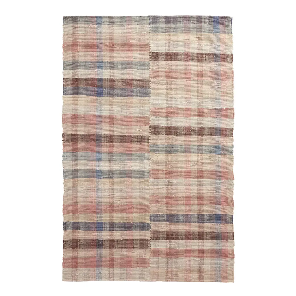 Handwoven with recycled materials by masterful Indian artisans, our Nilani chindi rug features offset multicolor stripes in blush, blue and warm muted shades. Textured stitching across its center field and a clean hemmed edge add a touch of modern distinction to its timeless design. An artisan upcycled rug bursting with pleasurable chindi texture, its soft underfoot feel and livable colors complement high-traffic areas in a selection of sizes.