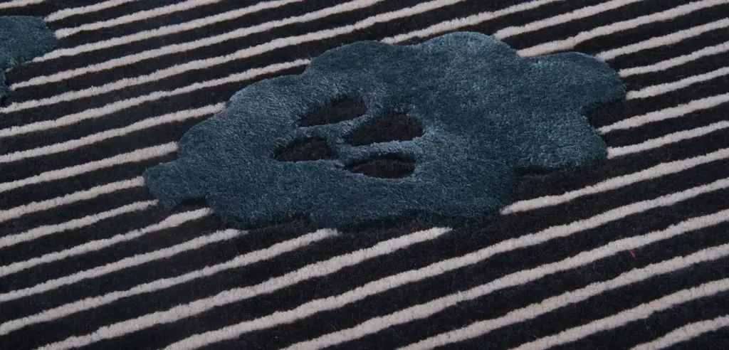 Hand tufted rug with varying heights, in wool and viscose. Weight: 4.5kg/m3 Density: 3000 gsm