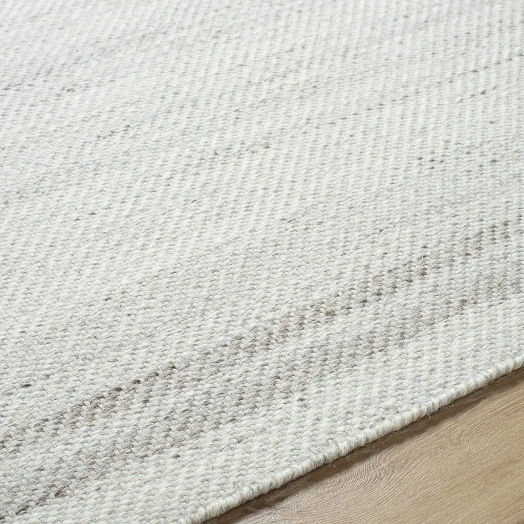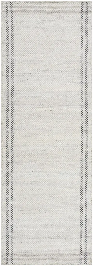 Collection: Nimue Colors: Gray, Ivory, Black Construction: Hand Woven Material: 100% Wool Pile: No Pile Styles: Transitional,Traditional Made In: India Thickness: 0.4" Price Range: $$$$$ (Affordable)