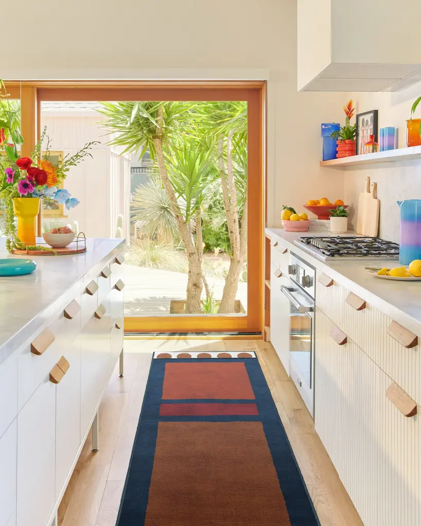 Your home is your canvas with our Justina Blakeney Nina Indigo & Rust Rug. Inspired by the work of abstract expressionist Mark Rothko, this geometric design features scalloped-edge curves and fluid colors, echoing Justina's sense of style. The cream and camel border, along with the navy blue outline, gracefully frames the composition, while rustic orange, red, and camel brown fill in this color-blocked and artistic style. Water-resistant, stain-resistant, and machine-washable. Rug colors may vary slightly according to your device and the lighting in your space.