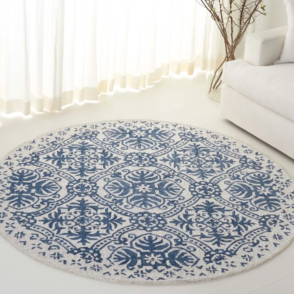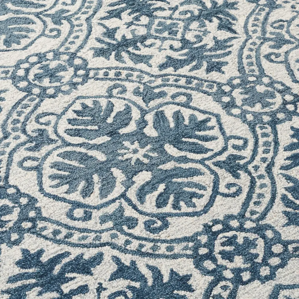 Elevate your living space with this exquisite area rug, measuring 8 by 10 feet and crafted in a stunning blue and ivory palette. The large rectangular design is complemented by a traditional style that adds a touch of elegance to any room. Hand tufted in India, this rug showcases the artistry of skilled craftsmen. Made from wool, it offers a soft and comfortable feel underfoot. With a height of 1/4 inch, it integrates seamlessly into your decor, adding both warmth and style. Transform your home with this captivating rug that combines timeless beauty and craftsmanship.