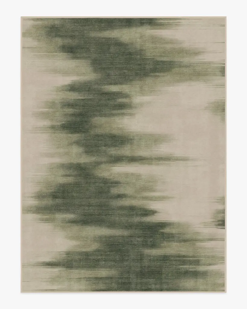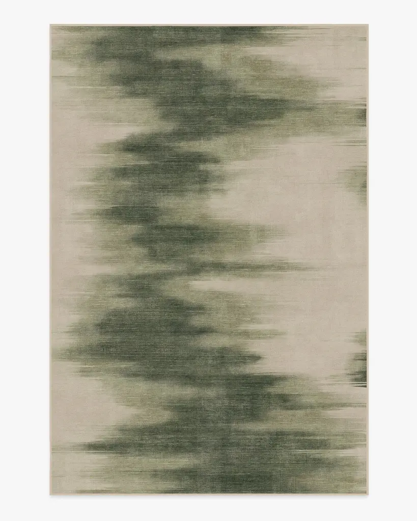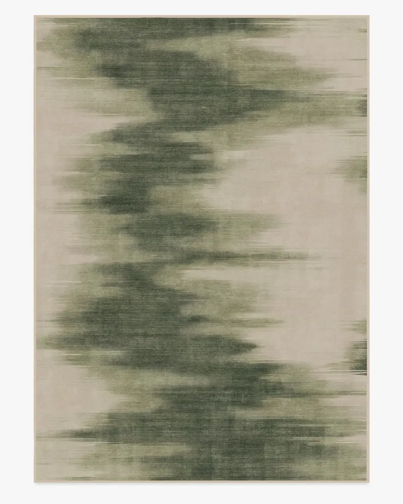 Entertain with ease with our Nina Takesh Cassis Olive Rug. Inspired by movement found in nature, this calming design features a flowing, irregular motif that resembles the path of a river. A peaceful variety of olive green hues set against a soft stone background celebrates the various forms of plants such as majestic trees, delicate leaves, and lush moss. Water-resistant, stain-resistant, and machine-washable. Rug colors may vary slightly according to your device and the lighting in your space.