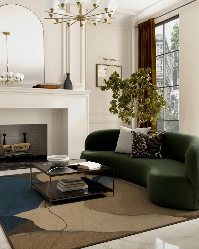 Invite elegance into your home. Our Nina Takesh Loire Natural Denim Blue Rug features an abstract swirl of shapes and lines in earthy taupe and brown tones, beautifully complemented by refreshing blues and navy. This serene design subtly alludes to the meeting of the shore and the sea, adding a coastal vibe to any space. Water-resistant, stain-resistant, and machine-washable. Rug colors may vary slightly according to your device and the lighting in your space.