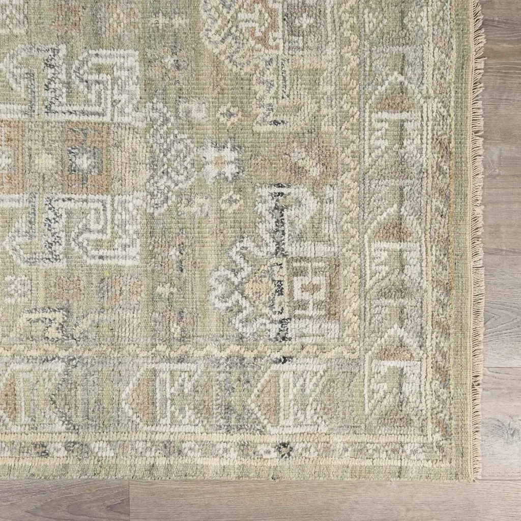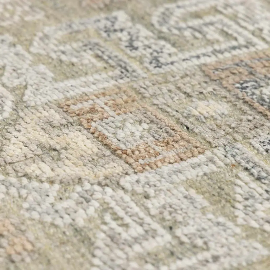 Collection: Ninoy Colors: Charcoal, Tan, Peach, Medium Gray, Light Gray Construction: Hand Knotted Material: 60% Wool, 40% Viscose Pile: Low Pile Pile Height: 0.12" Styles: Traditional Made In: India Thickness: 0.31" Fringe Length: 1" Price Range: $$$$$ (Premium)