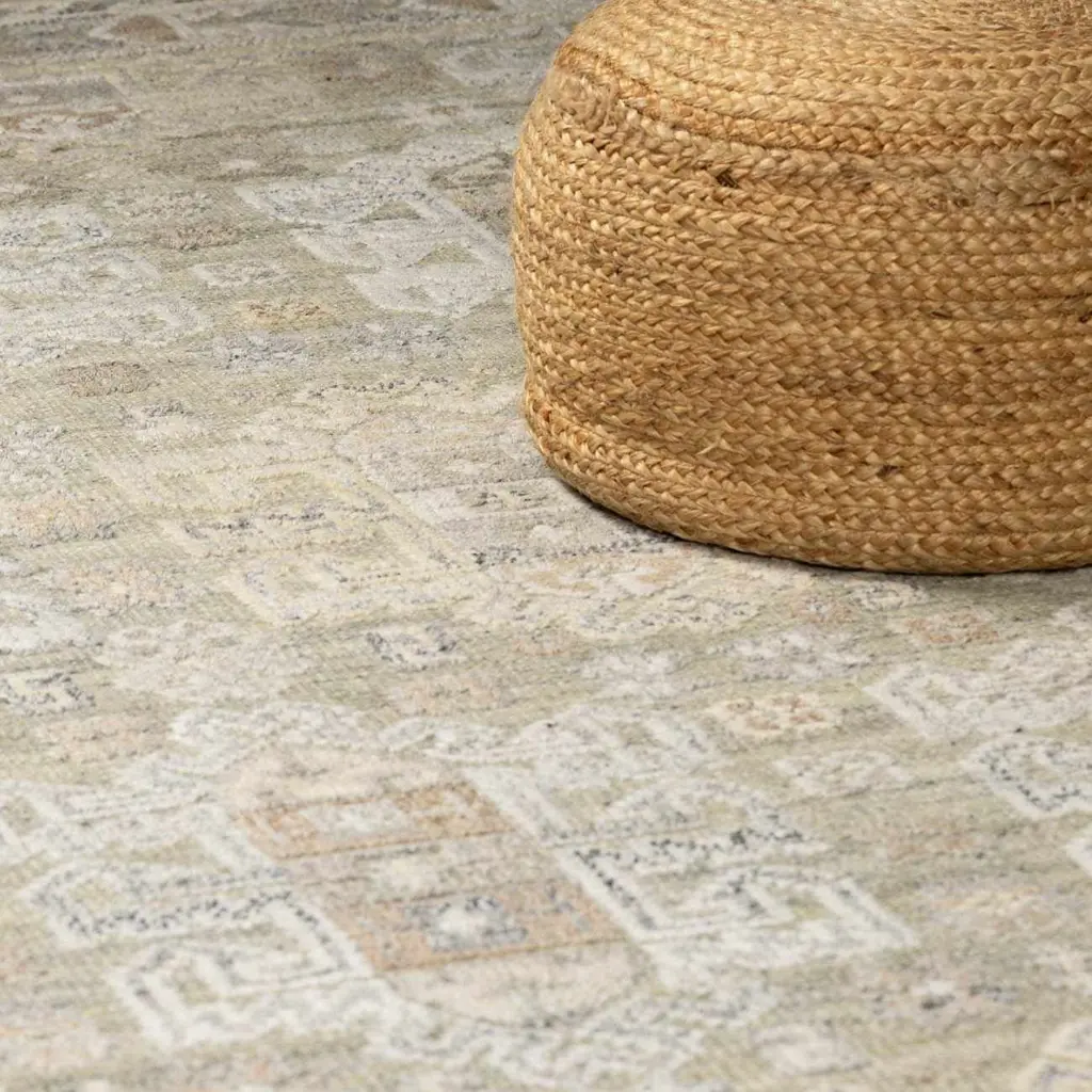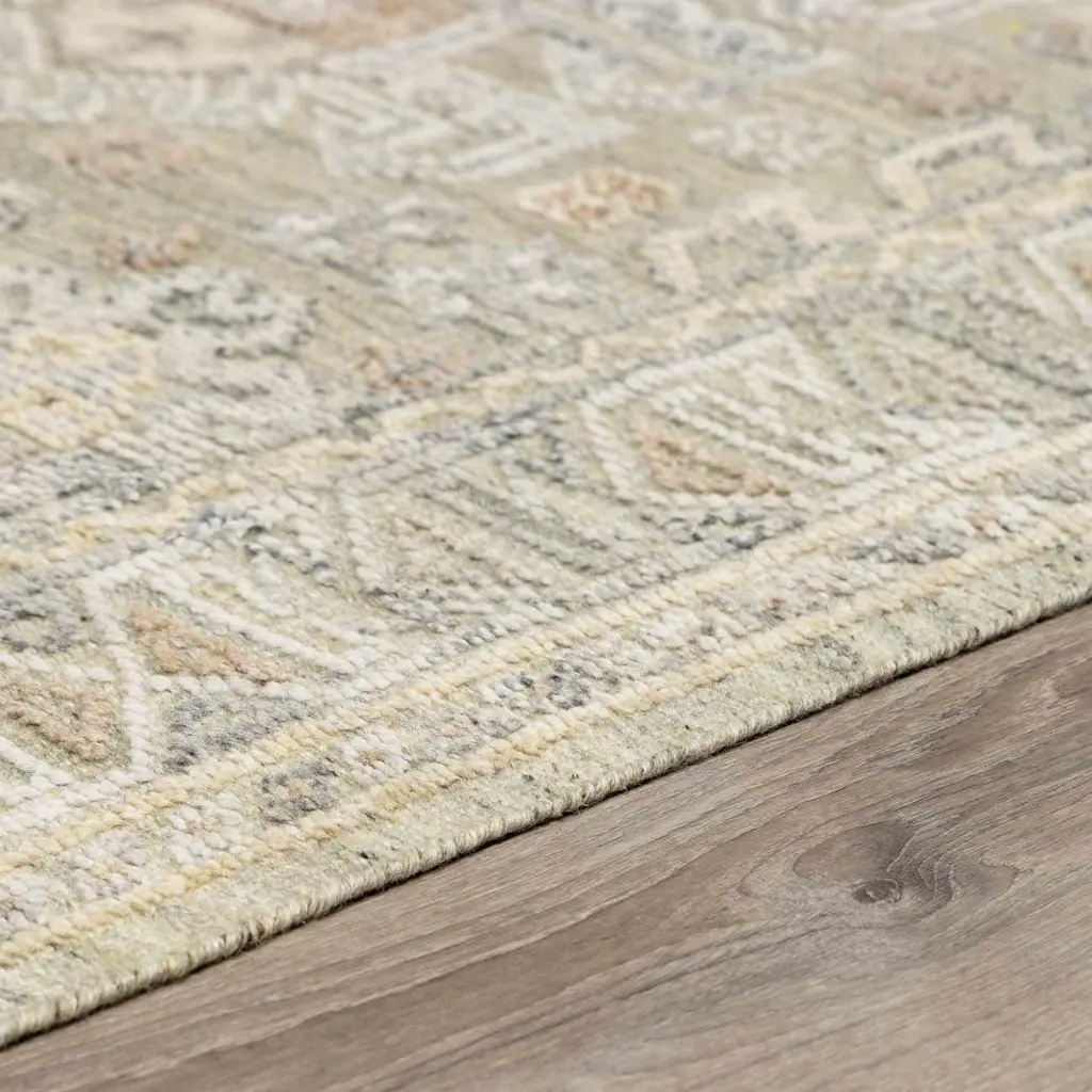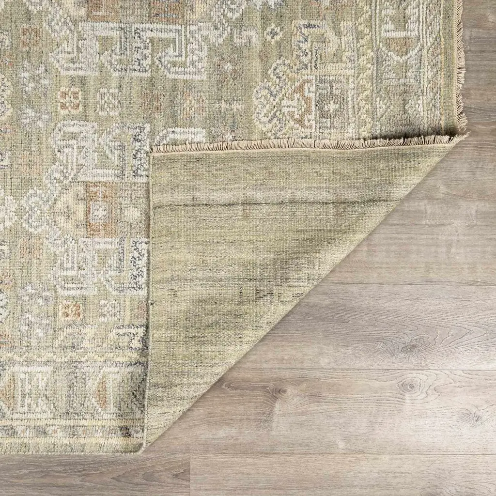 Collection: Ninoy Colors: Charcoal, Tan, Peach, Medium Gray, Light Gray Construction: Hand Knotted Material: 60% Wool, 40% Viscose Pile: Low Pile Pile Height: 0.12" Styles: Traditional Made In: India Thickness: 0.31" Fringe Length: 1" Price Range: $$$$$ (Premium)