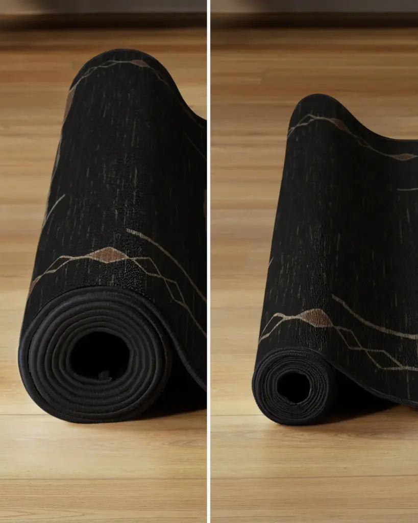 Discover the moody side of Moroccan design with our Architectural Digest Nisa Ink Black Rug, designed by Hema Persad. Rich, sexy, and cozy, this style draws inspiration from Beni Ourain Moroccan rugs, and features authentically organic line work and asymmetric patterns. Rustic earth tones against a dark charcoal background bring a touch of warmth to any room. Water-resistant, stain-resistant, and machine-washable. Rug colors may vary slightly according to your device and the lighting in your space.