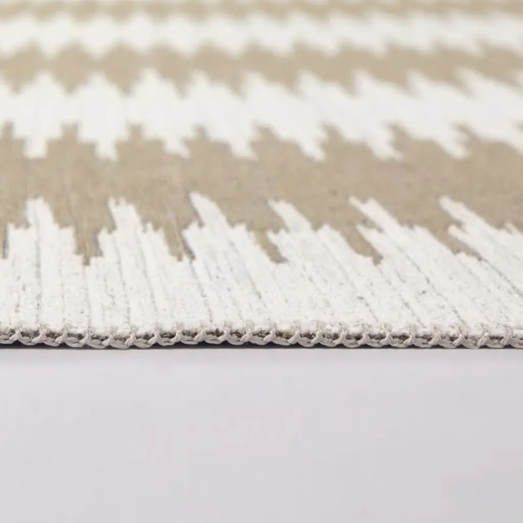 The inspiration for this collection was found in the rich culture of handwoven jute rugs and is the result of a smart combination of a very natural looking jute yarn and a 100% recycled wool-look polyester. Ethnical inspired and geometric linear looks, intricate chevrons and abstract designs will enrich every home and create a cozy living space. Foldable and bespoke finishing with the shepherd's stitch to give each rug an extra touch of graceful look.