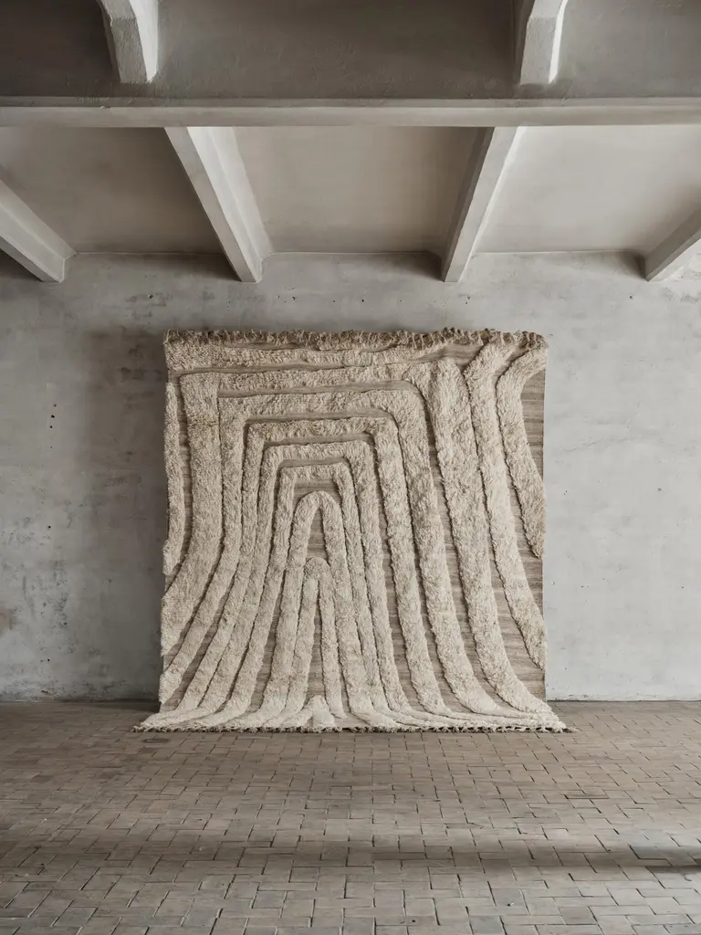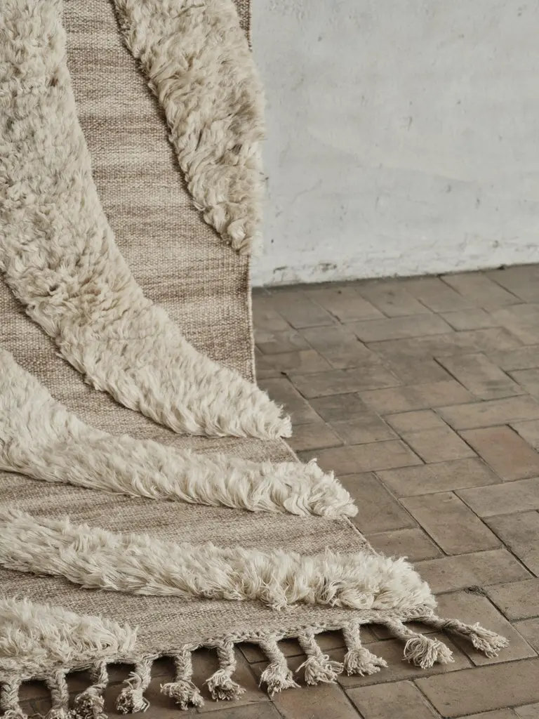 No.02 Rug by Cappelen DimyrDimensions: D220 x H280Materials: 85% wool 15% cottonno.02 is a decorative hand-knotted rug in natural wool. The soft irregular pattern creates a vivid and intriguing feel. The rug is made in natural and unbleached wool in a soft shell-white high pile and a sandy colored backing. A long fringe edge elevates the end line and adds an arty and ethnic detail. Any variation in colour or detailing is a result of the handcrafted nature of this item and makes each piece unique. Please also note this is a partly long pile and shaggy rug which usually have a tendency to shed more than low pile rugs. Make sure to vacuum often to reduce this. Please contact us.Cappelen Dimyr is a creative collective based in Copenhagen, passionate about creating contemporary artisanal rugs and tapestries in the finest natural fibers, handcrafted by specialists in India using traditional techniques. The world of Cappelen Dimyr is significantly bohemian, warm and artistic with a clear DNA – conscious, crafted and personal.The point of view is an interpretation of slow luxury with each object carefully designed and produced to stand the test of time.Cappelen Dimyr launched the first chapter of rugs in the autumn of 2019 and now offers both rugs and tapestries, available online and with carefully selected retailers worldwide.