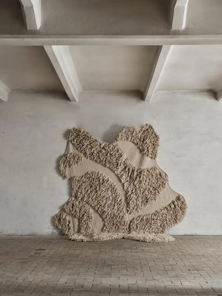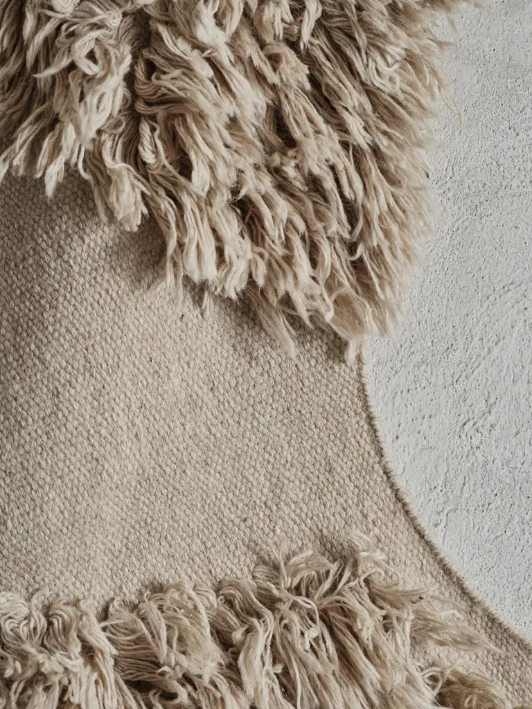 No.08 Rug by Cappelen DimyrDimensions: D290 x H350 cmMaterials: 85% wool 15% cottonno.08 is a true eclectic statement piece celebrating the understated lush aesthetics of Cappelen Dimyr. Its organic and irregular shape creates a soft and artistic vibe with its texture in highs and lows creating a vivid and intriguing tactility. The rug is crafted from natural unbleached New Zealand wool in a soft crème beige.Any variation in colour or detailing is a result of the handcrafted nature of this item and makes each piece unique. Please note this is a partly long pile and shaggy rug which usually tends to shed more than low pile rugs. Make sure to vacuum often to reduce this. Please contact us.Cappelen Dimyr is a creative collective based in Copenhagen, passionate about creating contemporary artisanal rugs and tapestries in the finest natural fibers, handcrafted by specialists in India using traditional techniques. The world of Cappelen Dimyr is significantly bohemian, warm and artistic with a clear DNA – conscious, crafted and personal.The point of view is an interpretation of slow luxury with each object carefully designed and produced to stand the test of time.Cappelen Dimyr launched the first chapter of rugs in the autumn of 2019 and now offers both rugs and tapestries, available online and with carefully selected retailers worldwide.