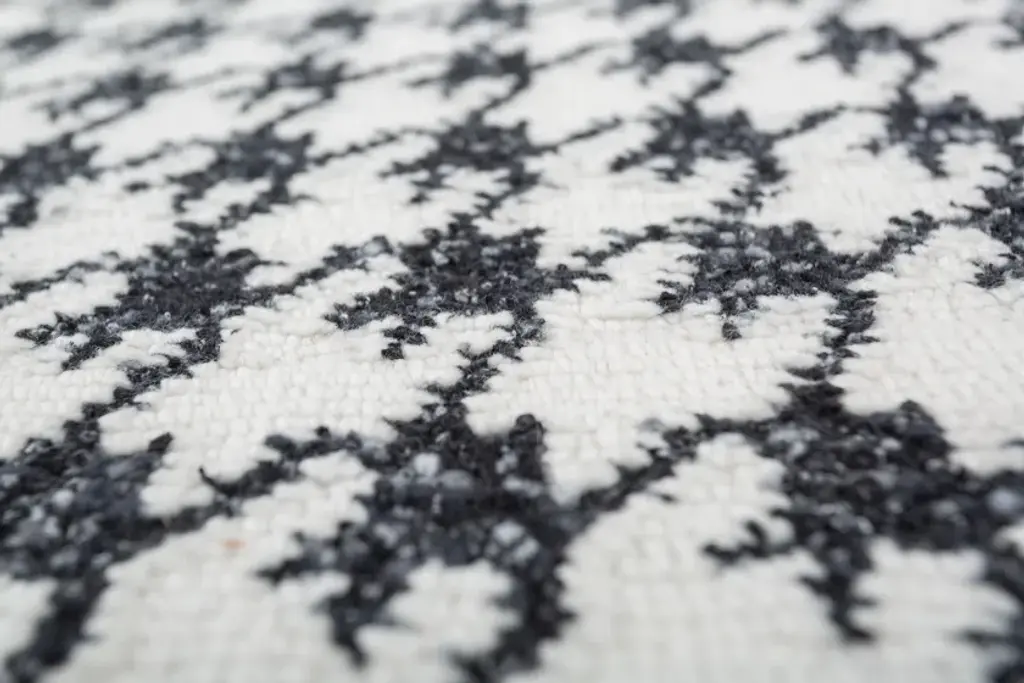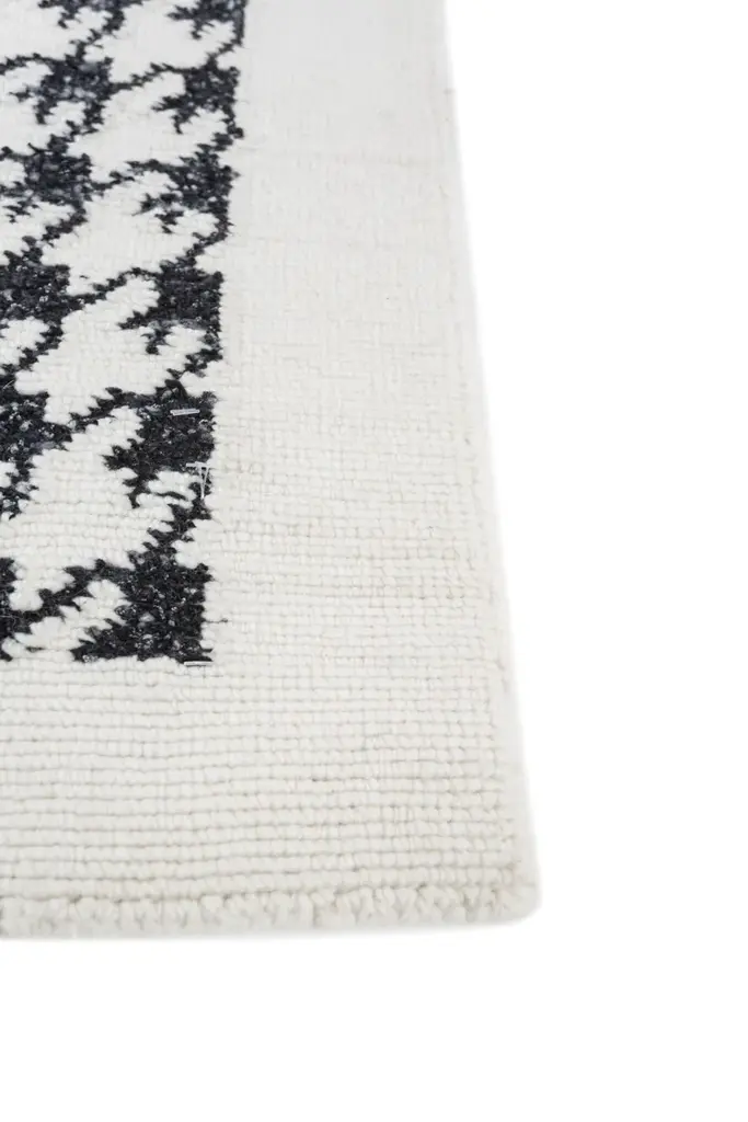 Noir AIAR-3001 is a hand-knotted rug, an extraordinary blend of contemporary design and traditional craftsmanship.This 180x270 cm hand-knotted rug in Ebony redefines luxury with an intricate all-over geometric silhouette. Crafted from the finest acrylic yarns by Vimar 1991, the prestigious yarn manufacturer wholly owned by Chanel, it embodies the essence of couture artistry. Jaipur Rugs artisans bring their expertise to weave these sartorial yarns into a masterpiece that exudes elegance and exclusivity. The design captures the flow and refinement of high-fashion fabrics, transforming the rug into a true icon of sophistication. A harmonious blend of tradition and innovation, it invites a luxurious experience that transcends the ordinary and celebrates the extraordinary.Composition: 61% Wool and 39% Polyester