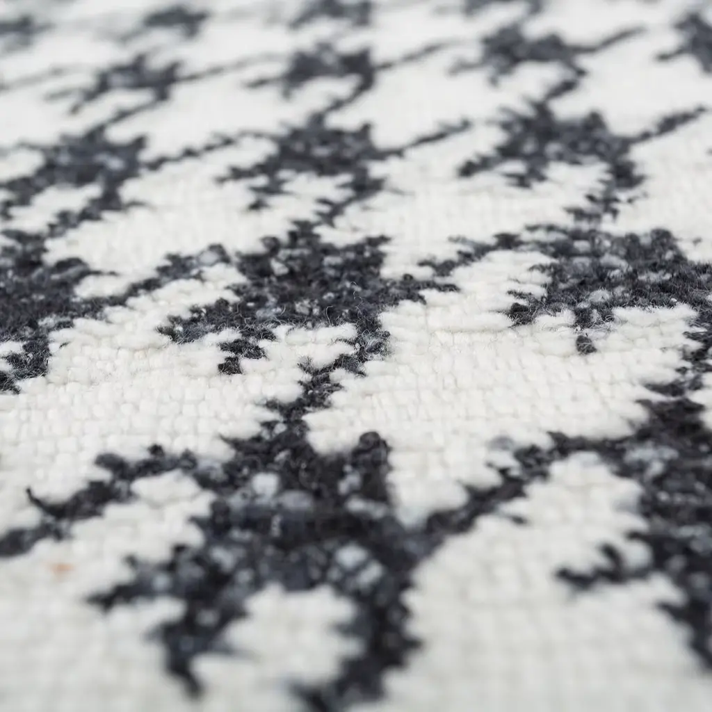 Jaipur Rugs' Atelier Collection. For the first time, the most precious fashionable fancy yarns from Vimar 1991, the prestigious yarn manufacturer wholly owned by Chanel, are utilized to design a carpet collection with a unique and refined look. The sartorial touch and charm of Vimar 1991 yarns, worked by the expert hands of Jaipur Rugs artisans, express a new idea of luxury and exclusivity. The result is a new experience in the world of carpets, transforming them into iconic elements of elegance and refinement, evoking the sophisticated atmosphere of couture fabrics. Made in India.