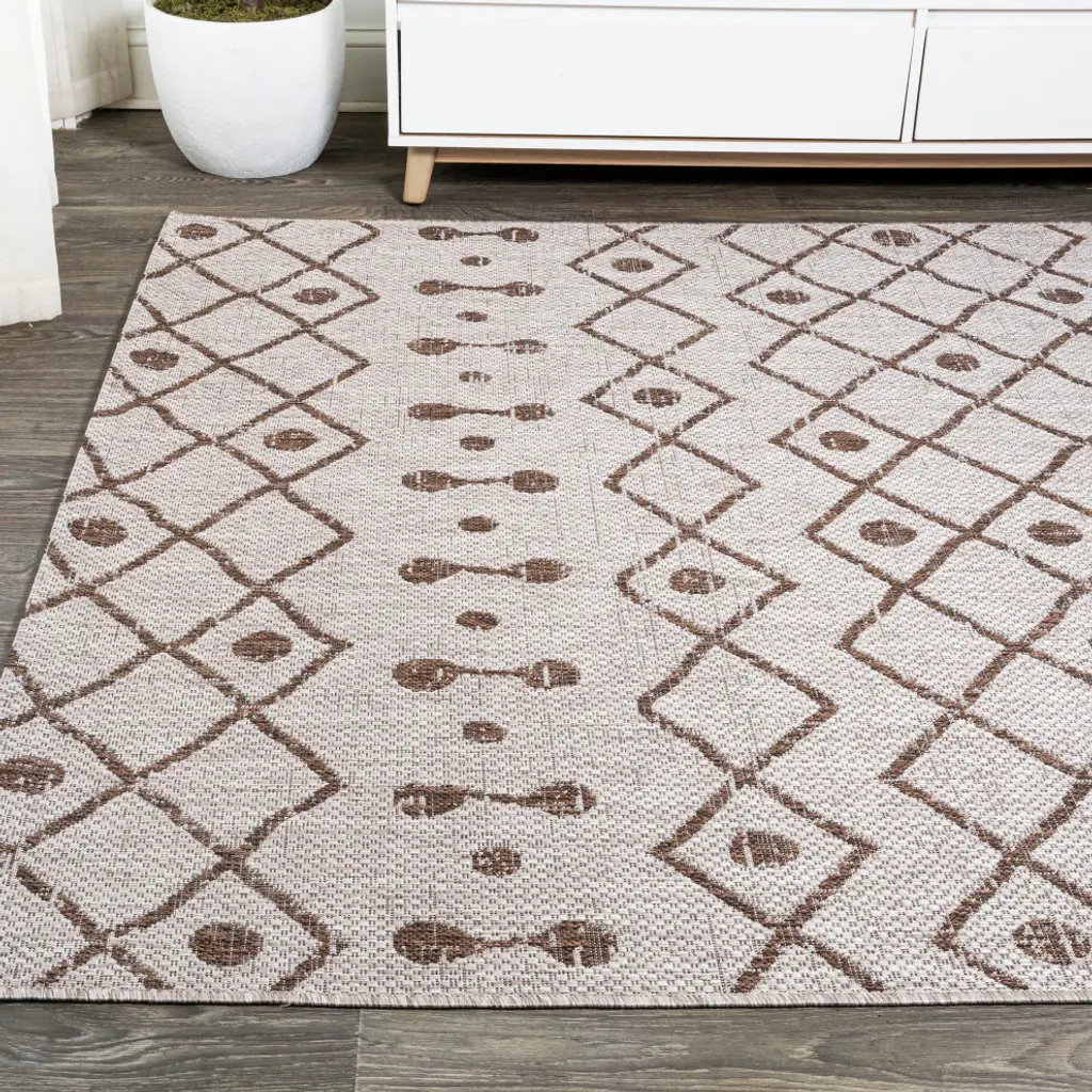 Moroccan influences abound in the geometric design of our tribal-inspired rug. The ornate diamond pattern has the handwoven look that adds a global chic touch. Add Bohemian flair to your living room, dining room, bedroom, kitchen or entry with this easy-care rug. Features:• Power loomed with a 0. 19" pile that''s soft and durable• The rich brown and beige color scheme adds mid-century modern flair to this tribal design• Made from easy-care polypropylene - just sweep, vacuum or hose down with mild soap and water• 100% Polypropylene• No backing, use of rug pad is recommended (sold separately)• Power Loomed in Turkey• Actual Dimension: 2 ft. 2 in. x 8 ft. • Color: Beige/Brown• Thickness measures: 0. 19 in. • Available in multiple sizes and/or colorsRug Care:• Vacuum regularly and spot clean as needed; avoid direct and continuous exposure to sunlight; use brushless vacuum; remove spills immediately; if liquid, blot with clean, undyed cloth by pressing firmly around the spill to absorb as much as possible; for hard to remove stains, professional rug cleaning is recommended; store in a dry, well ventilated area and rotate for consistent wear• Packing and shipping may cause temporary creases in rugs, which will flatten out after a week on the floor; to expedite the process, try back-rolling your rug before laying it down, and then allow ample time for the remaining creases to relax• Please Note: Due to differences in monitors, some rug colors may vary slightly. Lengths and widths may vary from the published dimensions. Patterns may vary slightly according to shape and size selected. About us:Style your floors with JONATHAN Y. By combining fine craftsmanship and design, this New York creative studio is bringing fashion to your floors. The collection mixes sustainable organic materials, vibrant colors and trend worthy styles to create JONATHAN Y''s distinctive catalog of rugs.