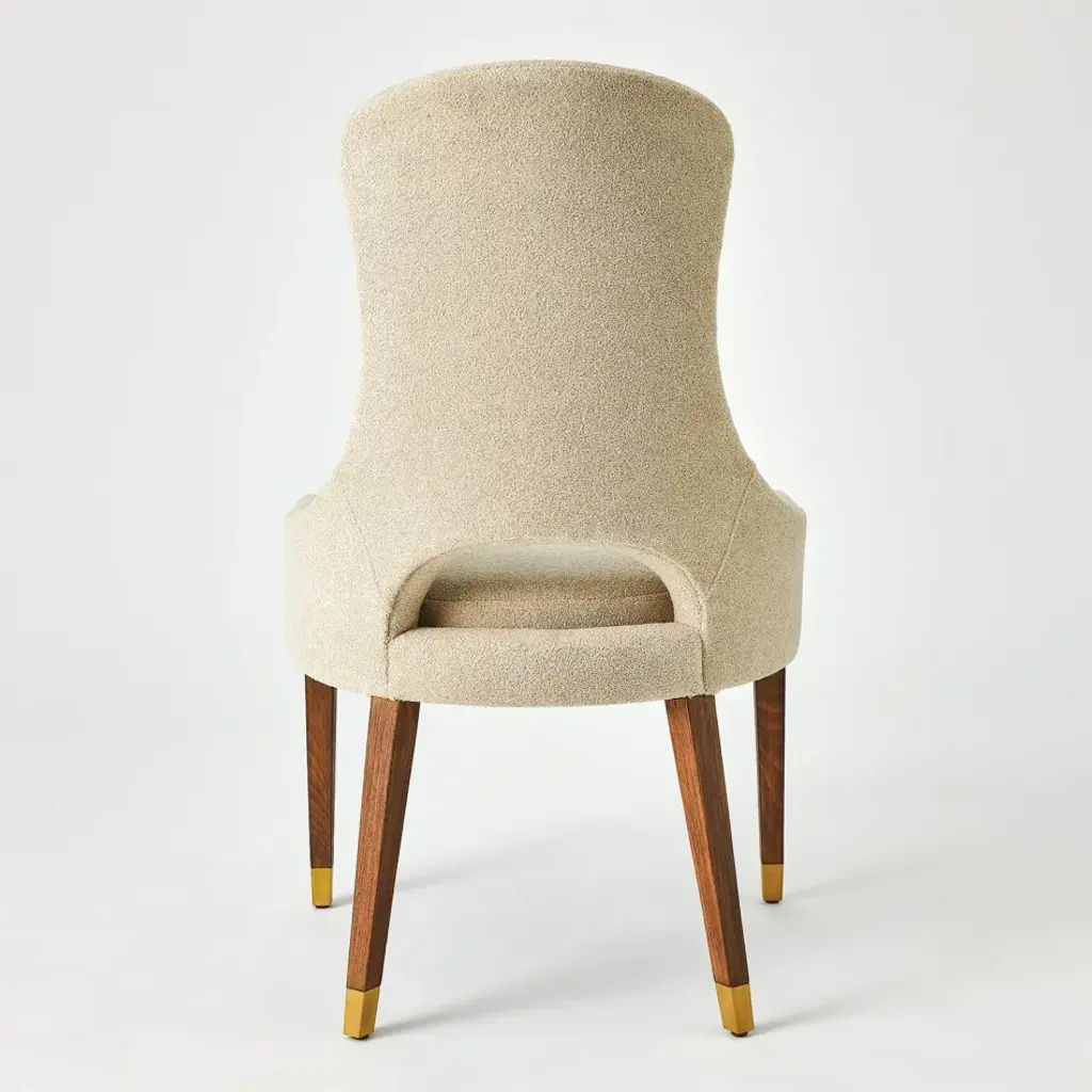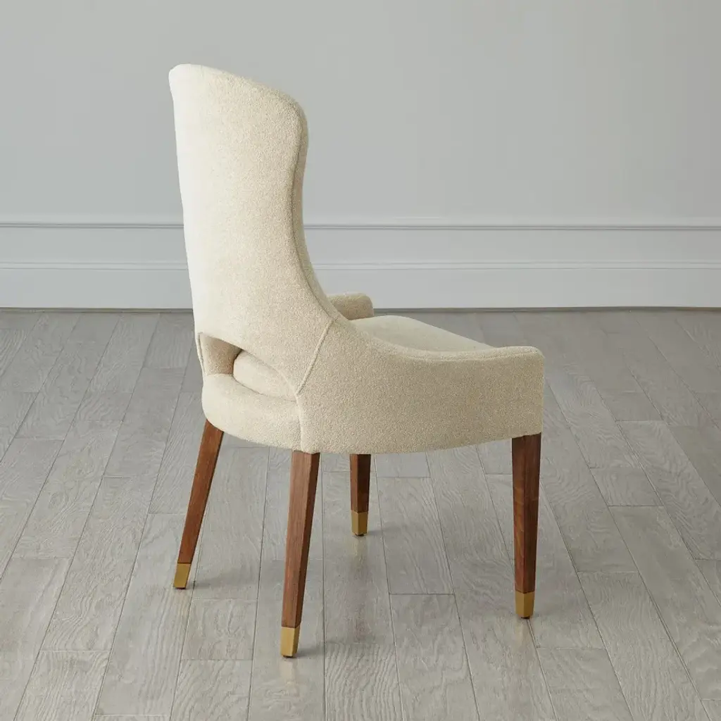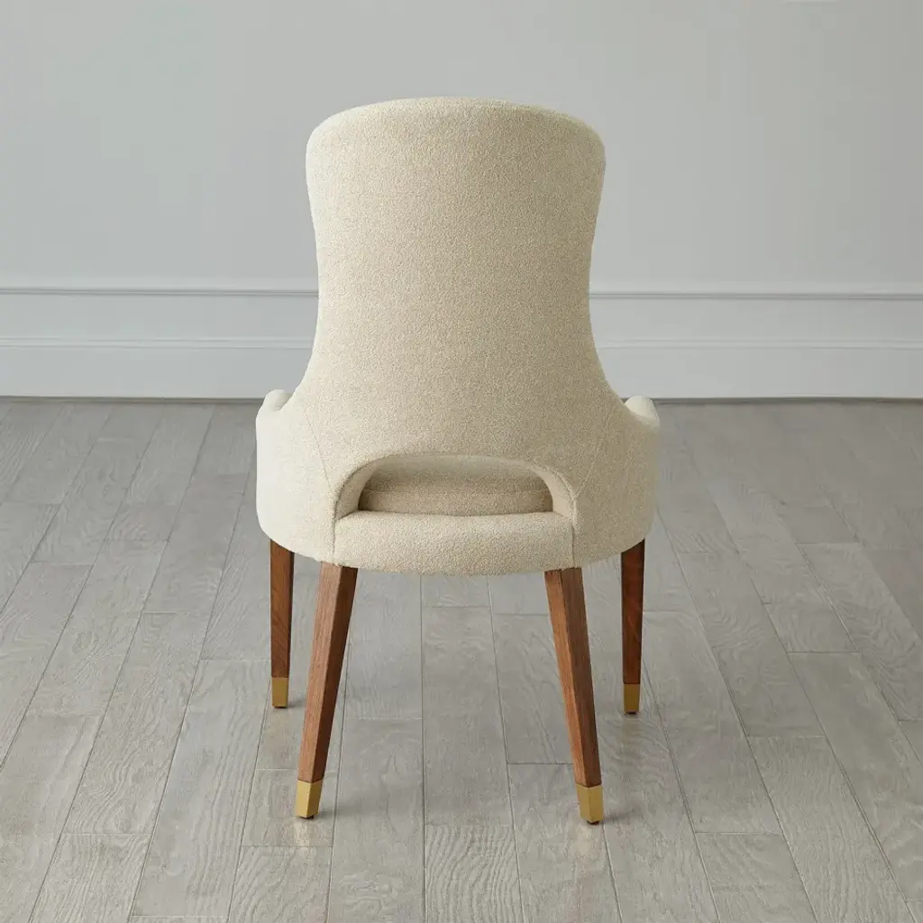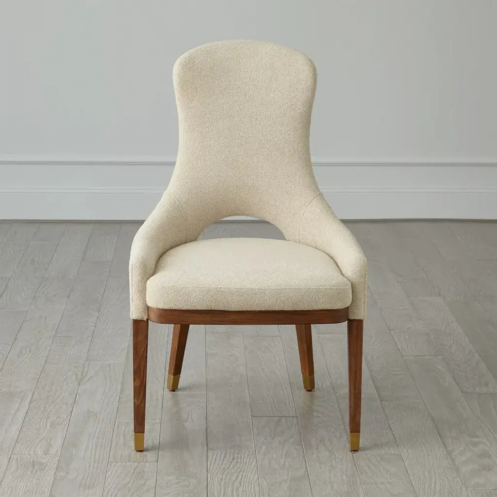The curves of the Nola Dining Chair sweep delicately upward wrapping the back in comfort. The chairs feature a solid beech wood frame with a light oak finish and brushed brass feet. The bouclé fabric is stain resistant for years of use and the slightly domed seat supports in all the right areas. From a fashion forward perspective, Global Views offers accessories, furniture, statement lighting, and an assortment of rugs and mirrors to add beauty and joy to your home.