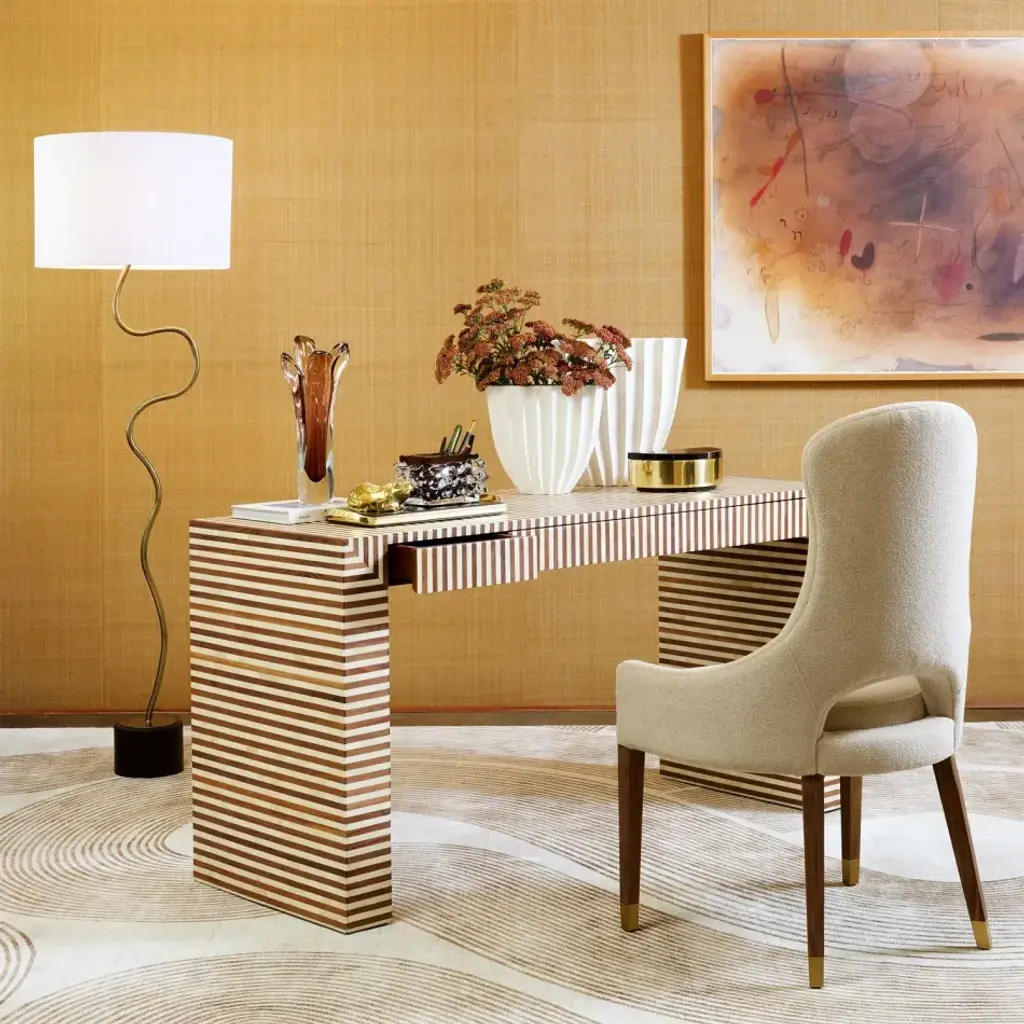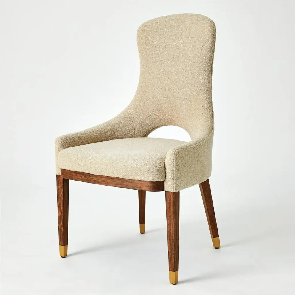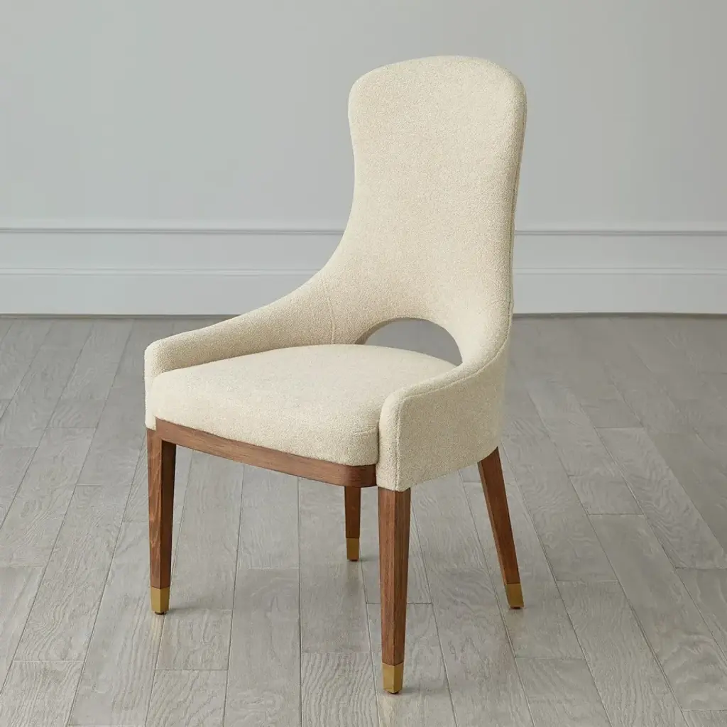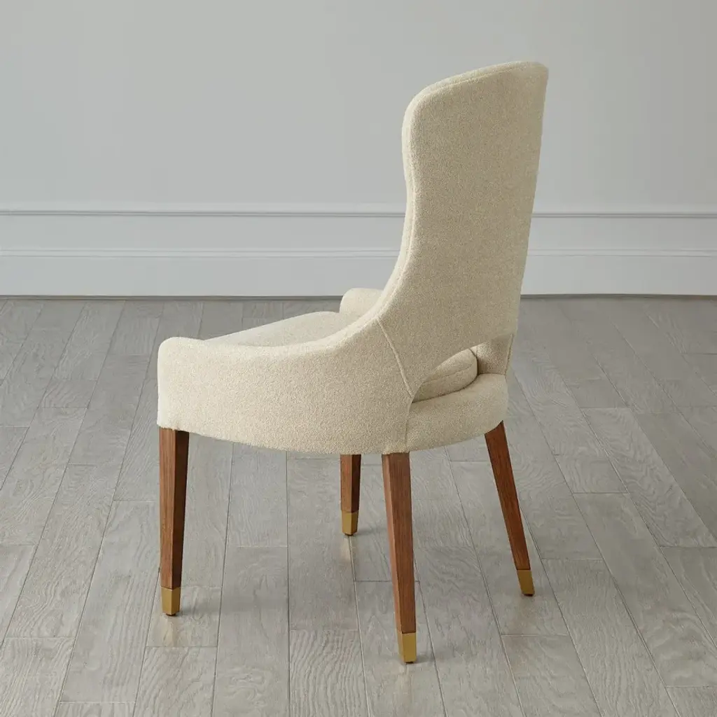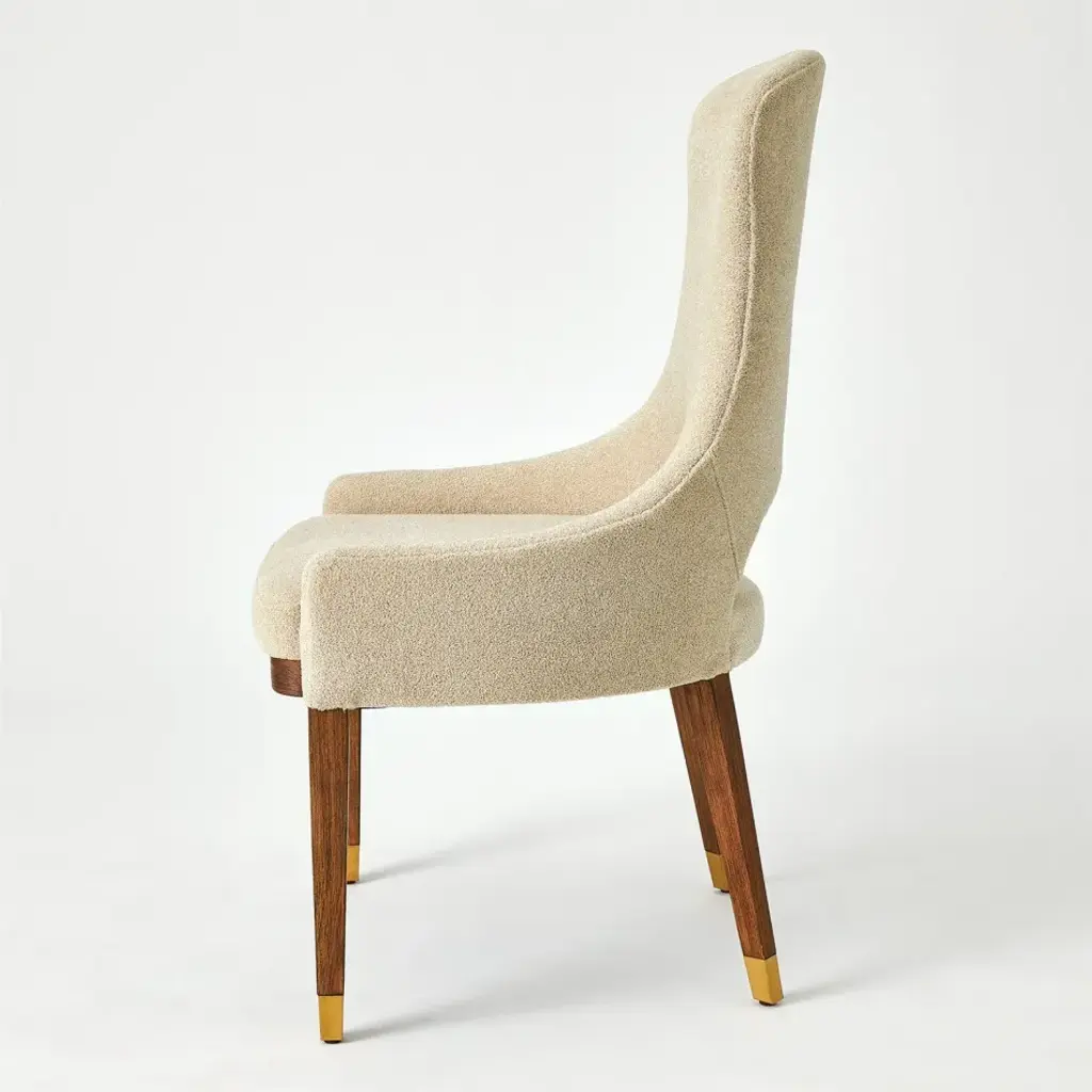 The curves of the Nola Dining Chair sweep delicately upward wrapping the back in comfort. The chairs feature a solid beech wood frame with a light oak finish and brushed brass feet. The bouclé fabric is stain resistant for years of use and the slightly domed seat supports in all the right areas. From a fashion forward perspective, Global Views offers accessories, furniture, statement lighting, and an assortment of rugs and mirrors to add beauty and joy to your home.