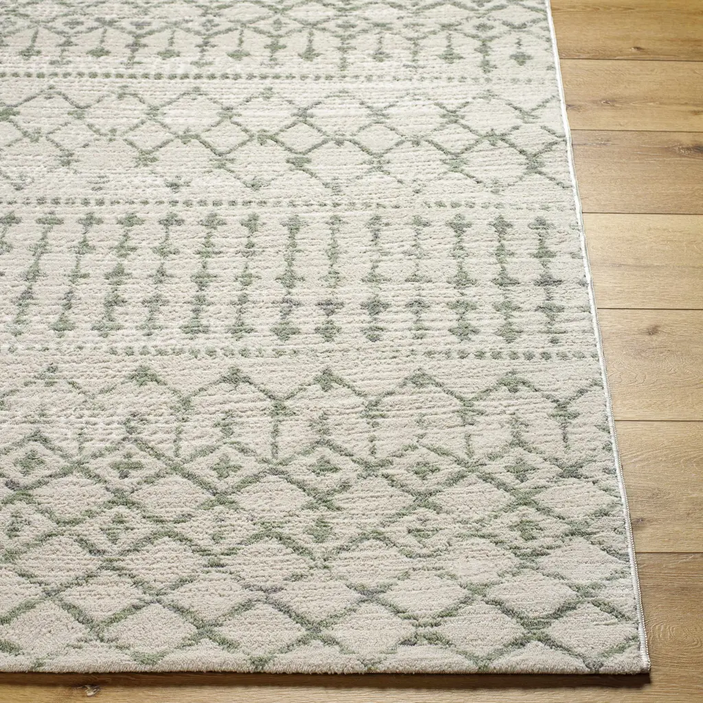 Collection: Nolen Colors: Cream, Medium Green, Gray Construction: Machine Woven Material: 100% Polypropylene Pile: Medium Pile Pile Height: 0.32" Styles: Transitional,Bohemian Made In: Turkey Thickness: 0.36" Price Range: $$$$$ (Most Affordable)