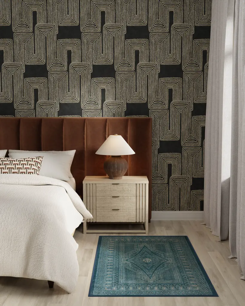 Add elegance and artistry to any room with our Martyn Lawrence Bullard Nomad Blue Rug. Inspired by beautifully designed block prints steeped in indigo, this symmetrical design translates Martyn Lawrence Bullard's Nomad prints into a classic medallion style. The rug, seemingly simple with its hues of blues, creams, and silvers, reveals hidden complexity through intricate details. Dots, dashes, and lines form fine patterns that captivate the eye. Water-resistant, stain-resistant, and machine-washable. Rug colors may vary slightly according to your device and the lighting in your space.