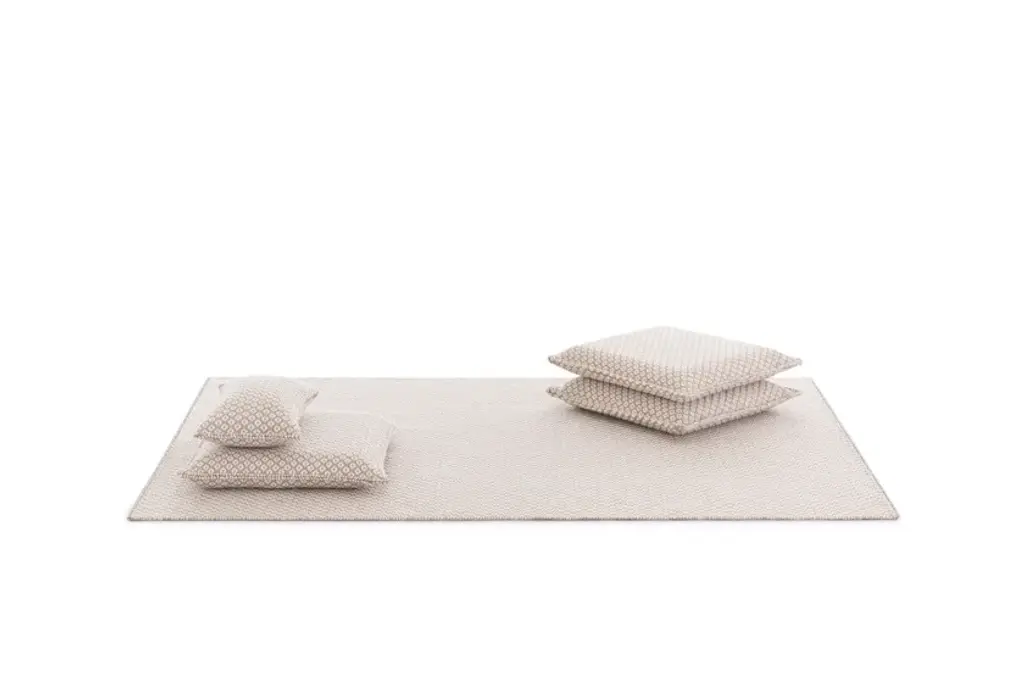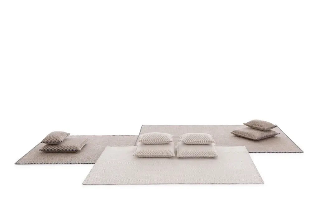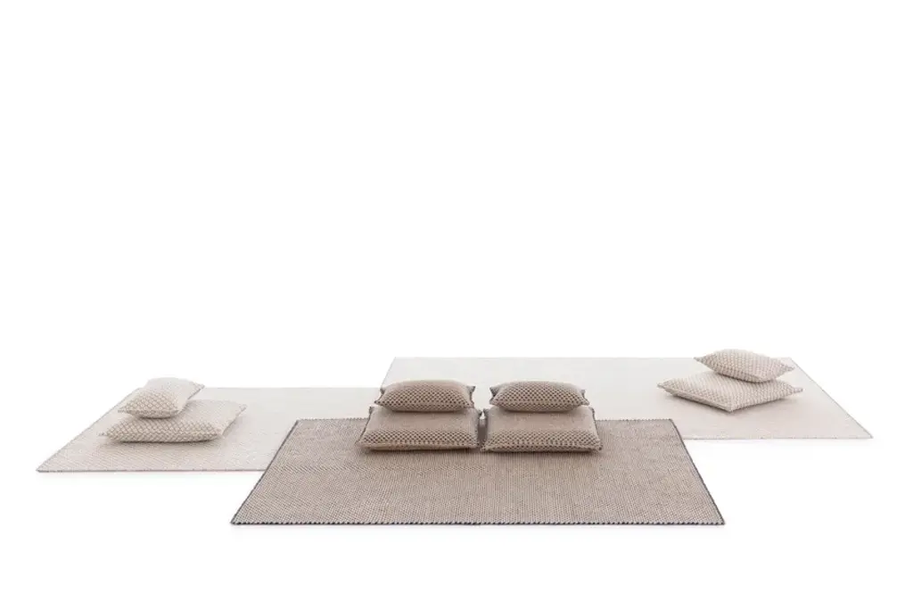 Nomad is a outdoor craftsmanship rug with 100% recycled fibers. Composition:100% recycled PETTechnique:Hand LoomLightweight, with essential elements and suitable for both indoor and outdoor use. These are the three most representative features of the NOMAD collection, a proposal inspired by the minimum of possessionswith which nomadic peoples move and with which they manage to create ephemeral spaces capable of providing a feeling of home and rest.NOMAD is the essence of Espacios GAN brought to its minimum expression, because with its carpets, poufs and cushions they can create multiple relaxed and informal settings, as well as structured environments.Its creator has developed a project that offers an exhibition that is as agile as possible, seeking a double nomadism, both from one place to another and within the samespace.Their design patterns are based on indigenous designs of India, used during migrations.