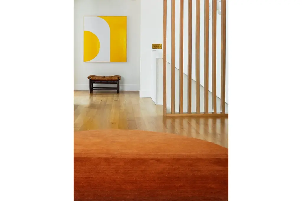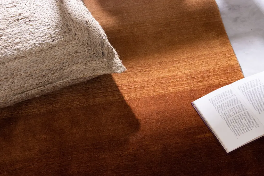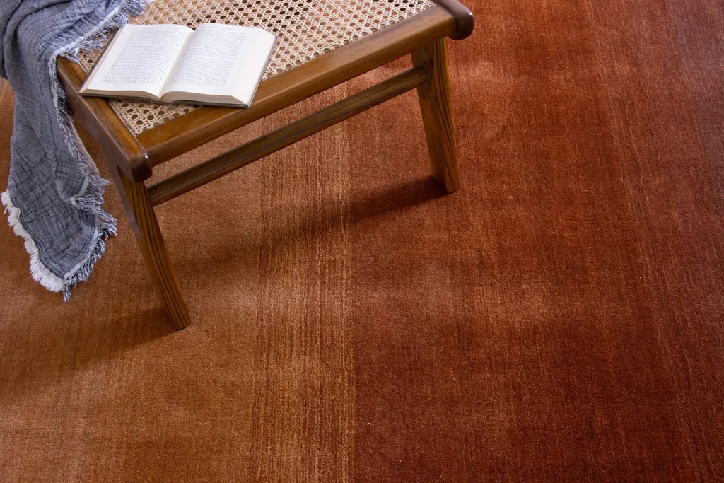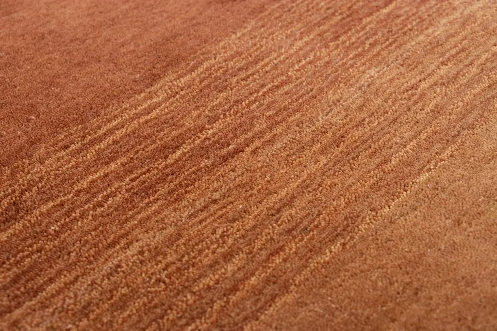 To create Ombré’s gradient, we soak wool yarn in warm water before dyeing. This step opens the fibers, which optimizes their color absorption. Each rug is blunt cut, washed, and rolled out to dry. Weavers shear the pile for uniformity and enhanced softness underfoot.